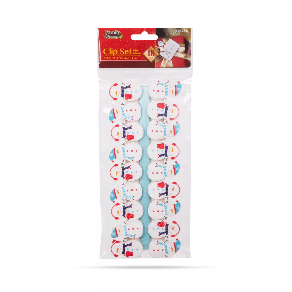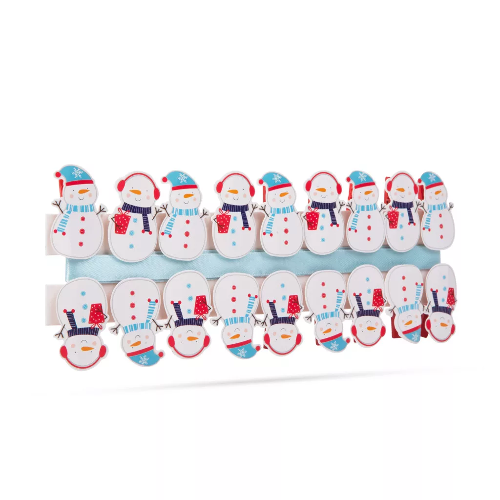 Karácsonyi csipesz szalaggal - hóember - 22 x 35 mm - 18 db, 2 m / csomag