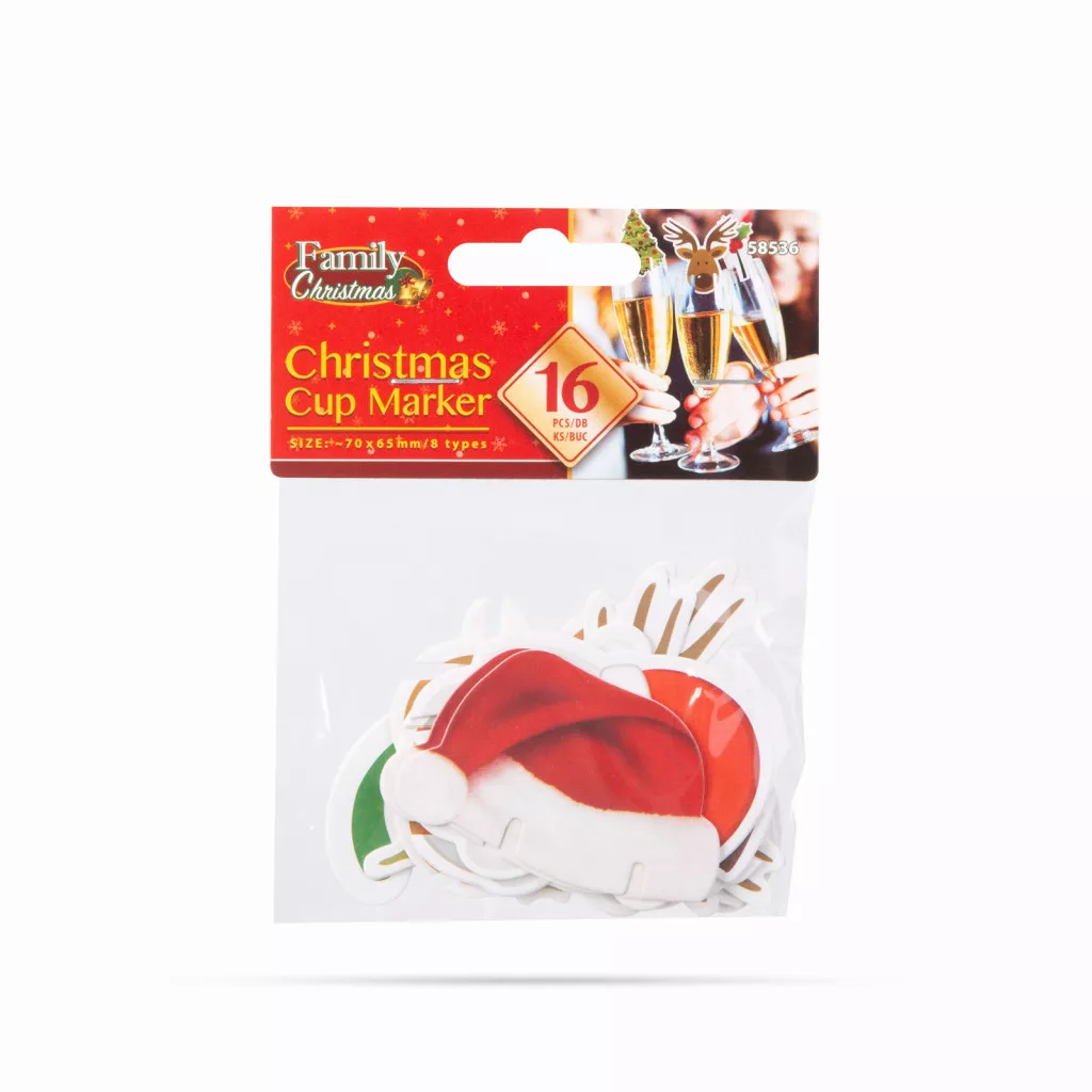 Karácsonyi pohárjelölő dekoráció - 8 féle - 16 db / csomag