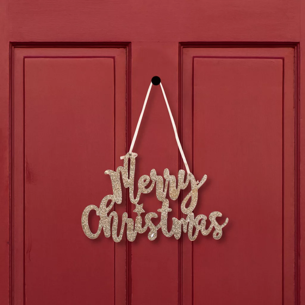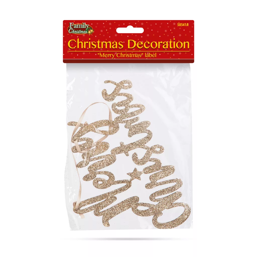 Karácsonyi dekoráció - "Merry Christmas" felirat - 20 x 12 cm - arany