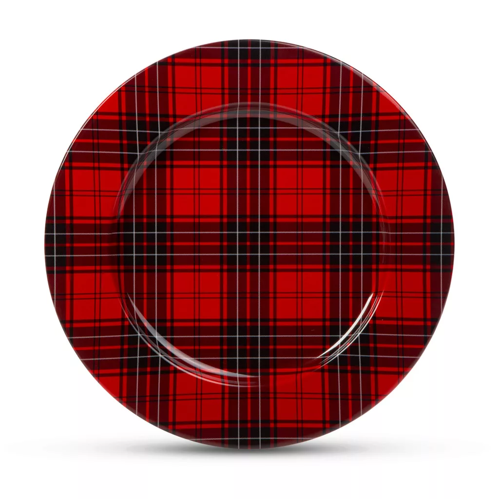 Karácsonyi tálca - fém  - kockás - 33 cm