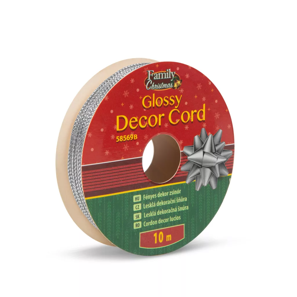 Fényes dekor zsinór - 10 m - ezüst