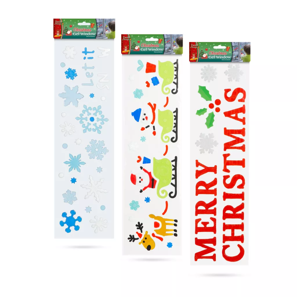 Karácsonyi ablakdekoráció - gél - 49,5 x 15 cm - 3 féle