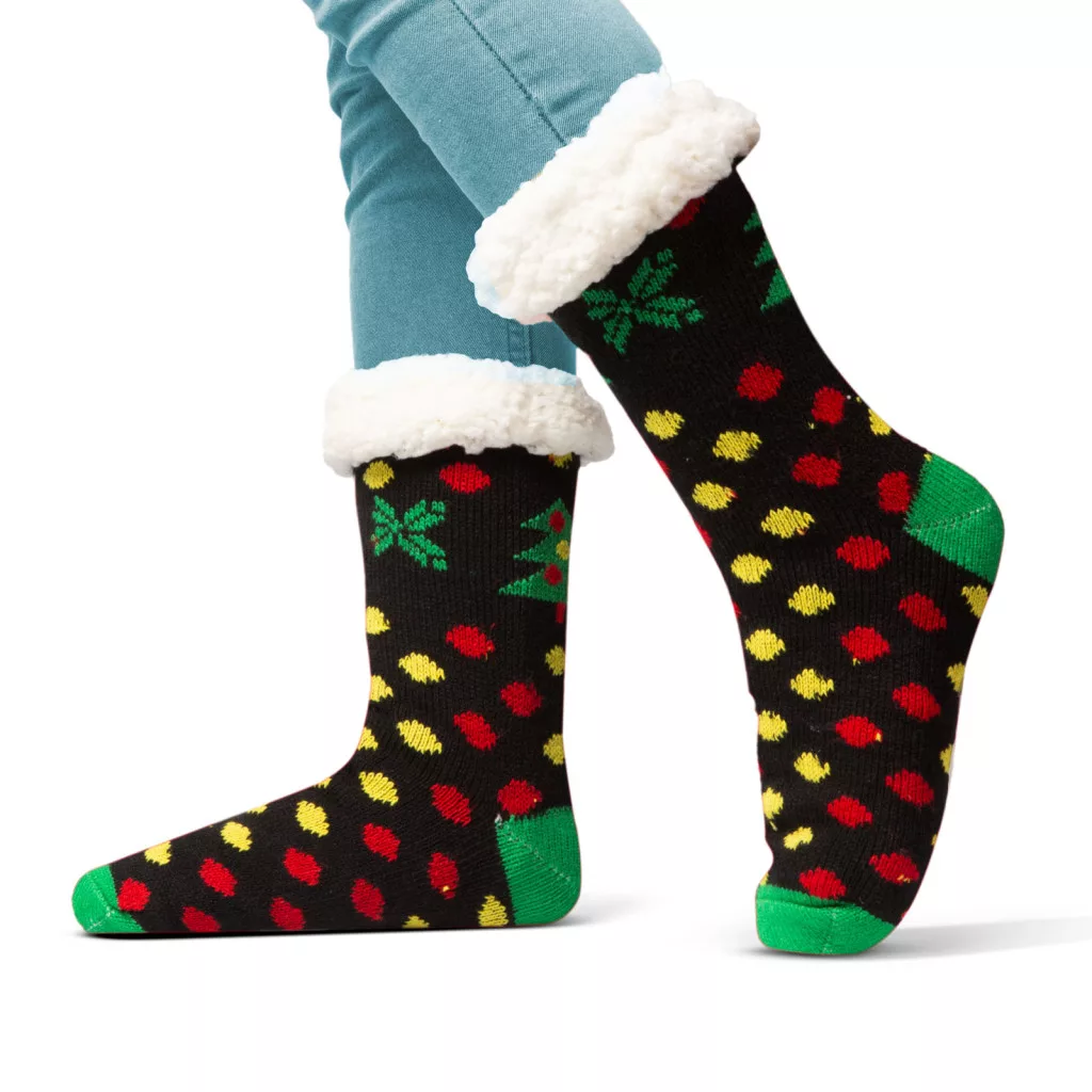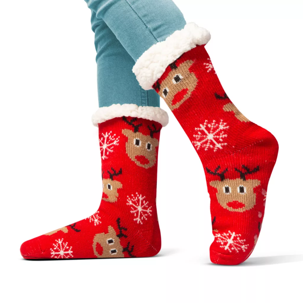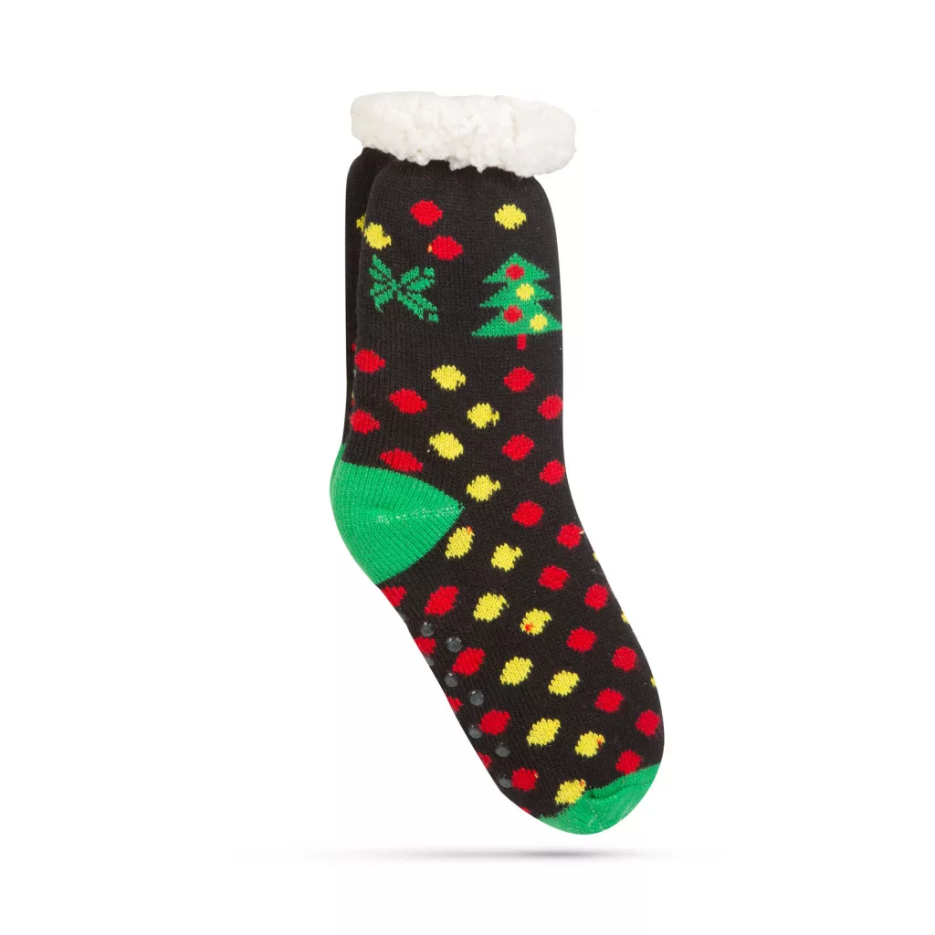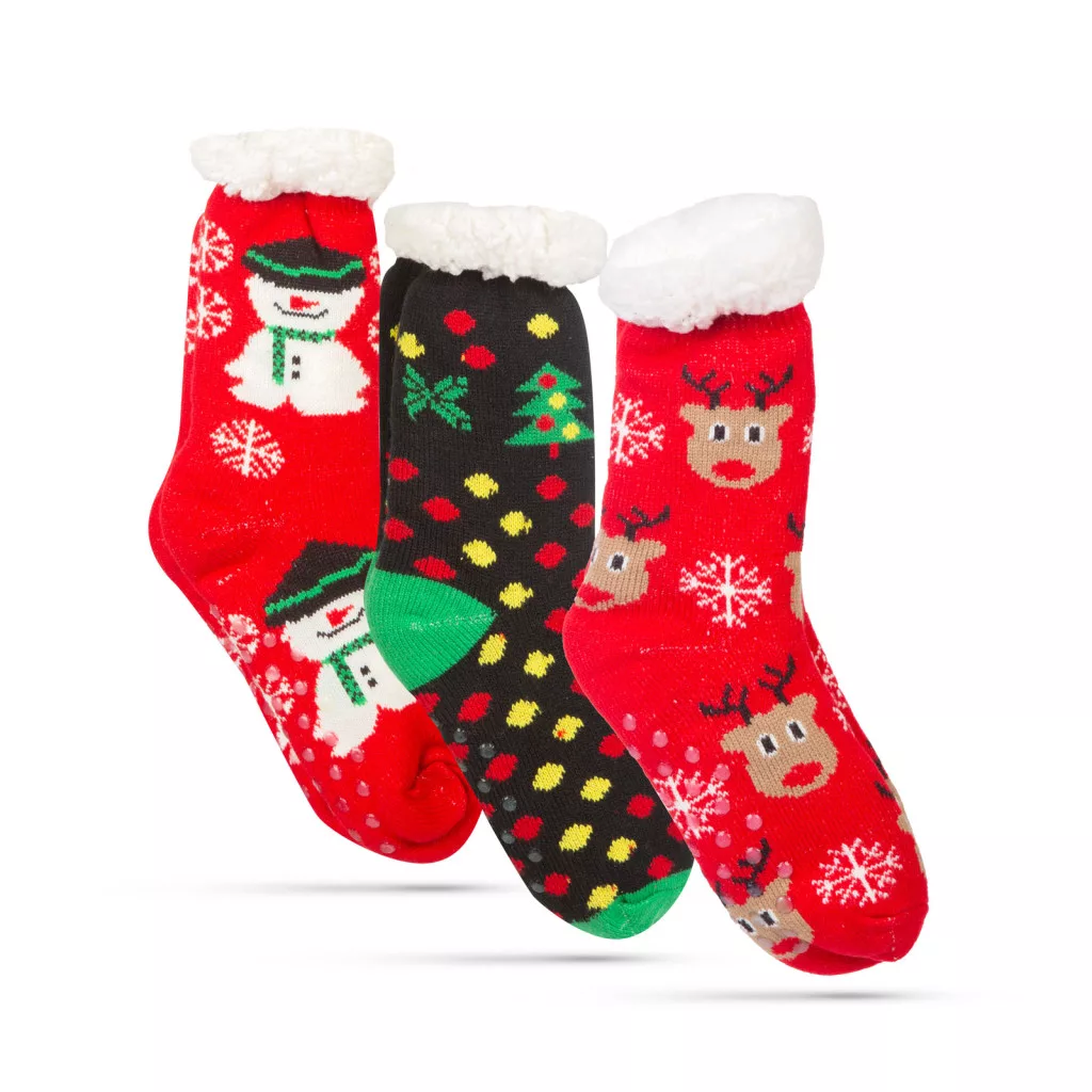 Különleges thermo zokni csúszásgátló pöttyökkel a talprészen. Ha Ön vagy valamelyik családtagja fázós, ez lesz a tökéletes karácsonyi ajándék! A leghidegebb napokon is meleget biztosít pihe-puha bélésnek köszönhetően. Szép karácsonyi mintájával a szezon sláger terméke!