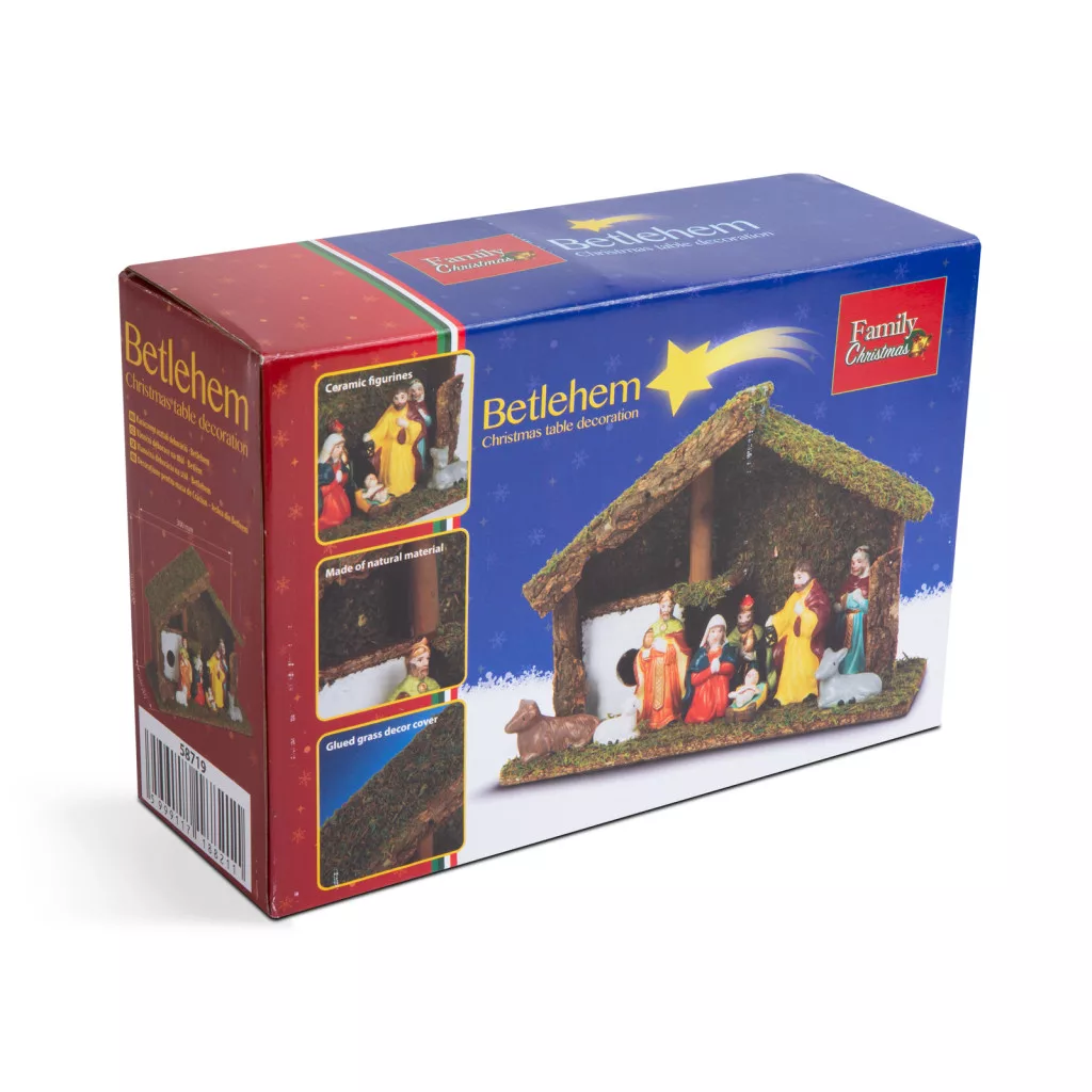 Az ünnep közeledtével varázslatos, meghitt hangulatot teremthet ennek az asztali kompozíciónak a segítségével. A fából készült jászol és a kerámia figurák élethűen ábrázolják a vallási helyszínt. Karácsonykor a Megváltó földi születését ünnepeljük. A bibliai hagyomány szerint Betlehemben látta meg a napvilágot, a város határában fekvő jászolban.