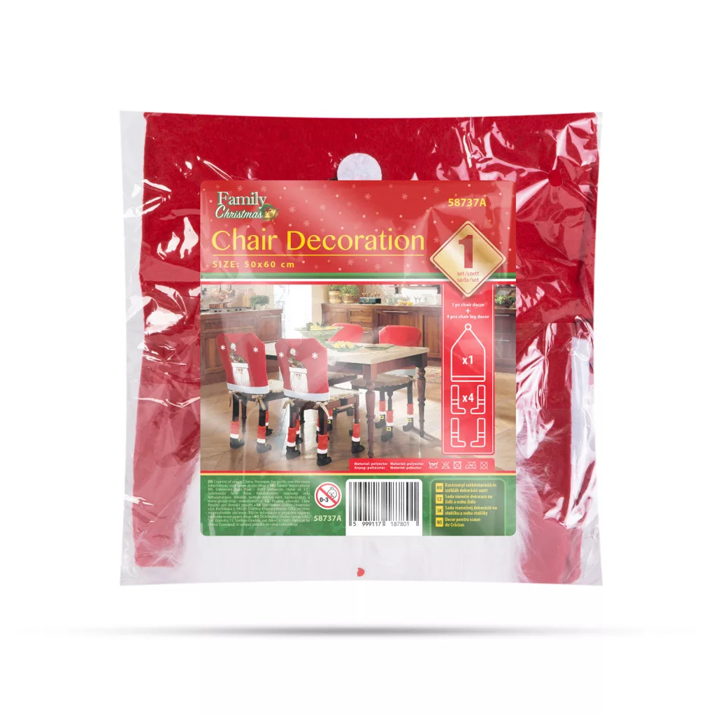 Öltöztesse otthonát ünnepi hangulatba ennek a székdekor szettnek a segítségével. A piros / fehér színek, minden ünnepi enteriőrben jól mutatnak. A nagy méret miatt a legtöbb székkel kompatibilis méret.