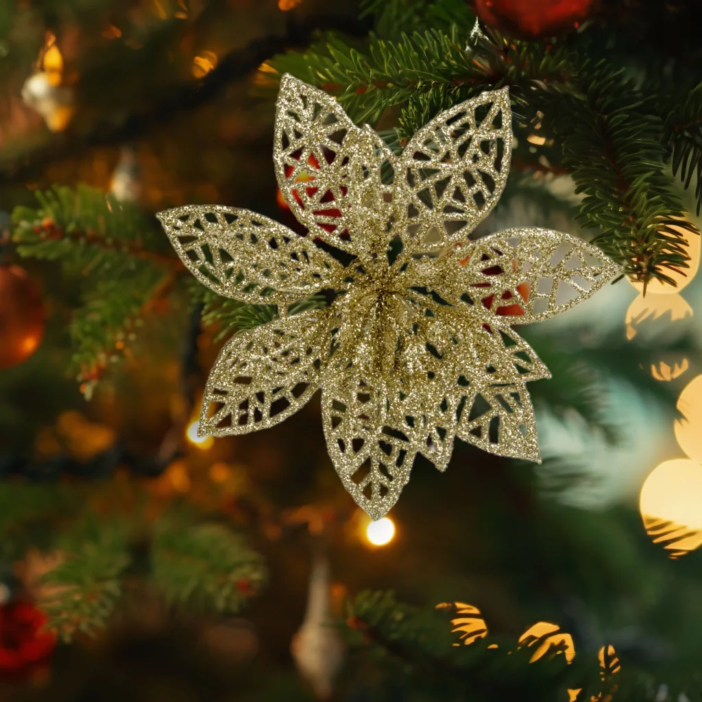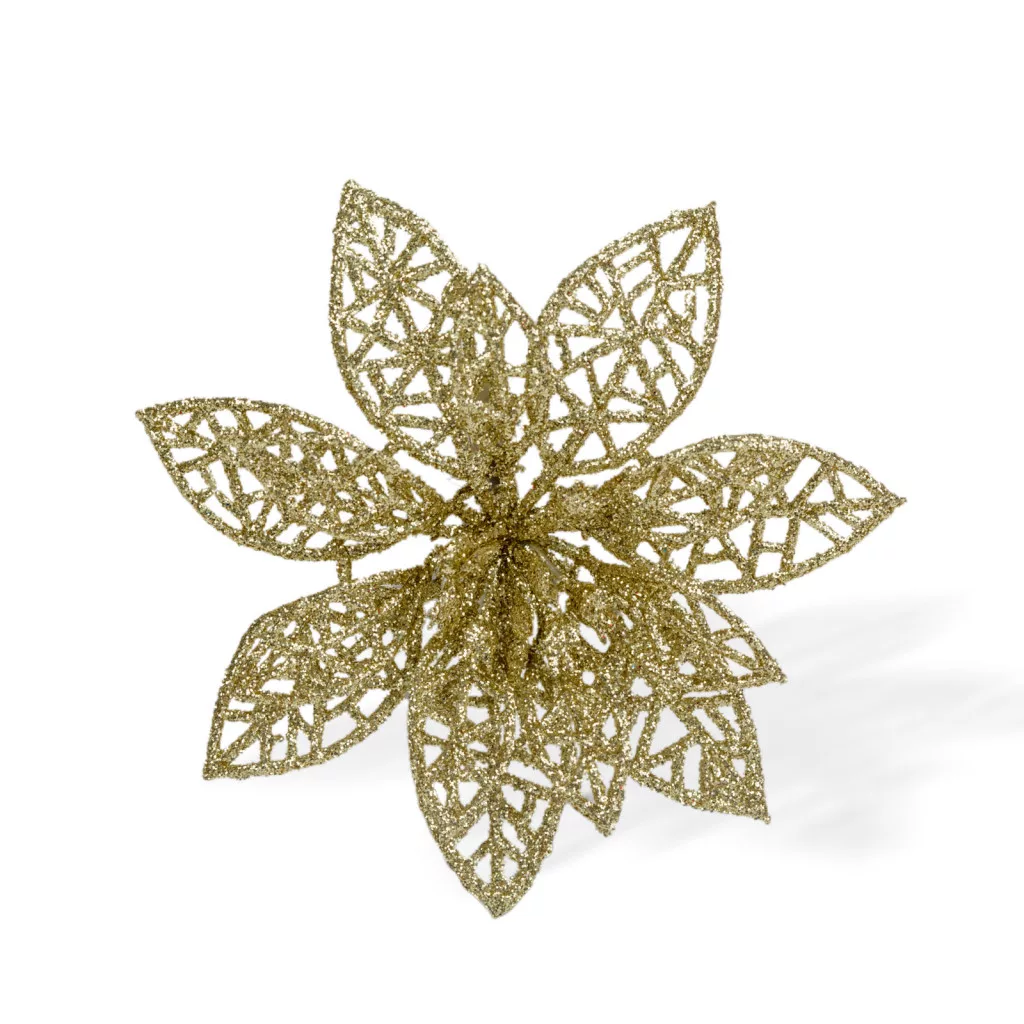 Különleges karácsonyi dekorációs termék, amely csipesz segítségével rögzíthető. A virág csillámos, glitteres felülettel rendelkezik. A csipeszes rögzíthetőségnek köszönhetően széles körben alkalmazható, ideális lehet karácsonyfák, girlandok, kopogtatók és adventi koszorúk díszítésére is.