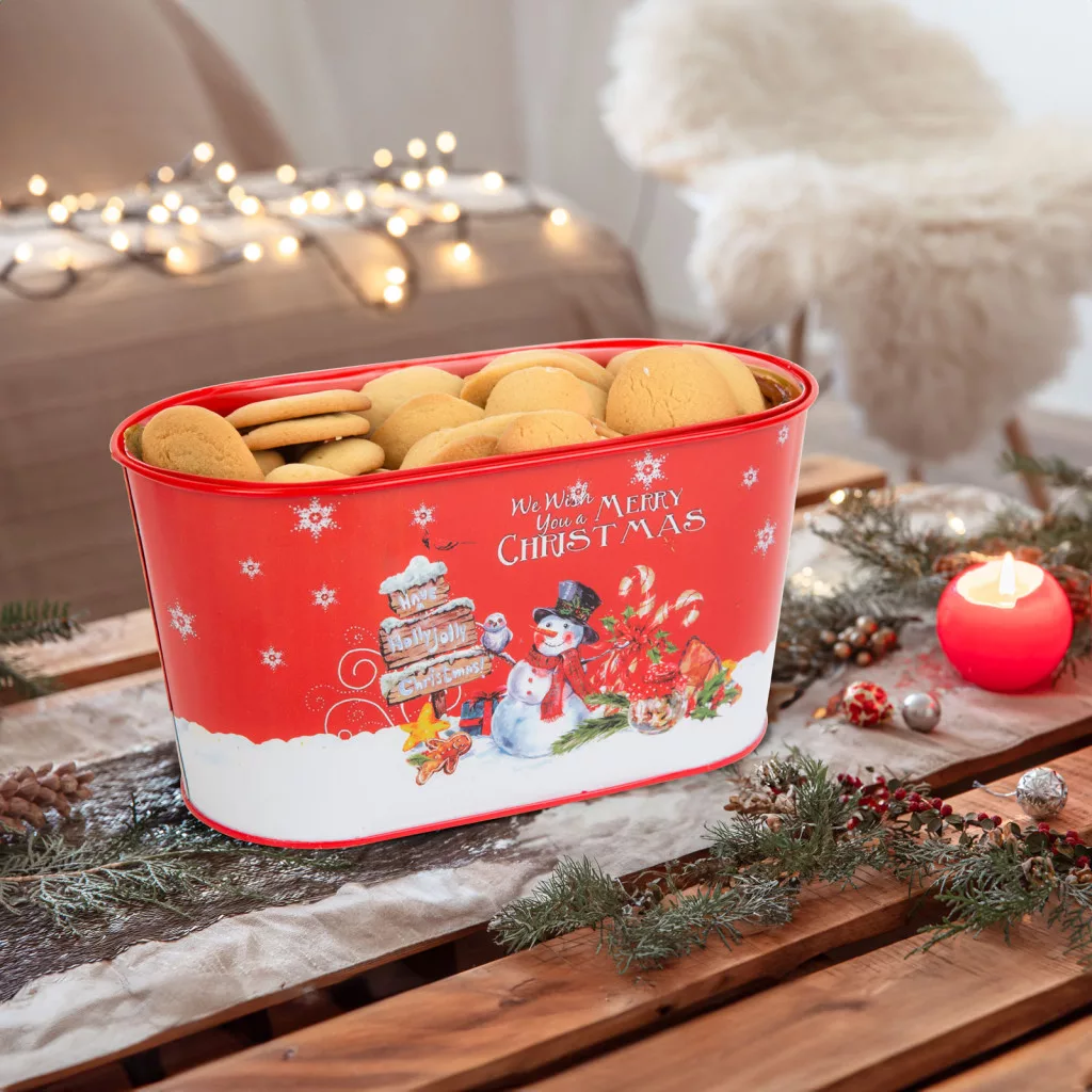 Karácsonyi fém kosár - hóember - 23 x 11,5 x 11,5 cm