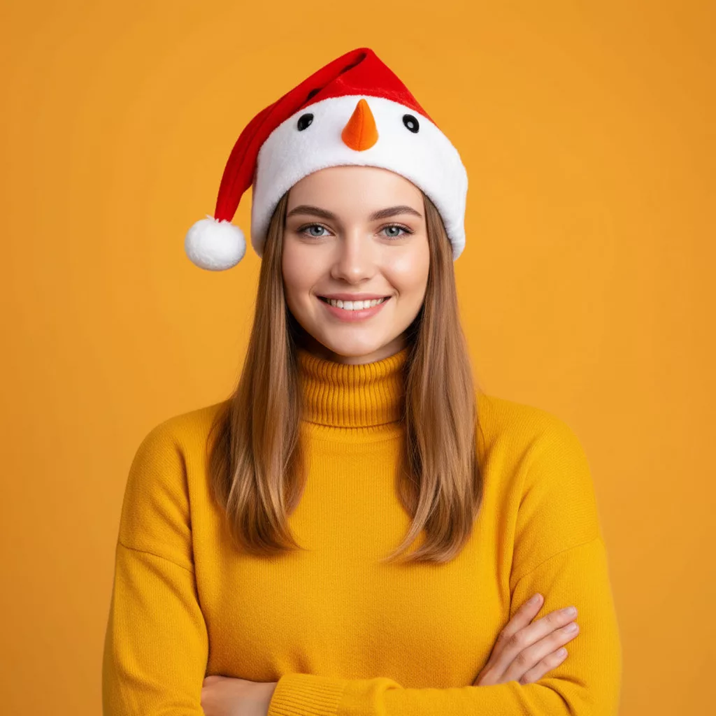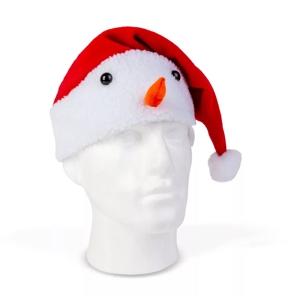 Karácsonyi mikulás sapka - Hóember mintával - 30 x 45 cm