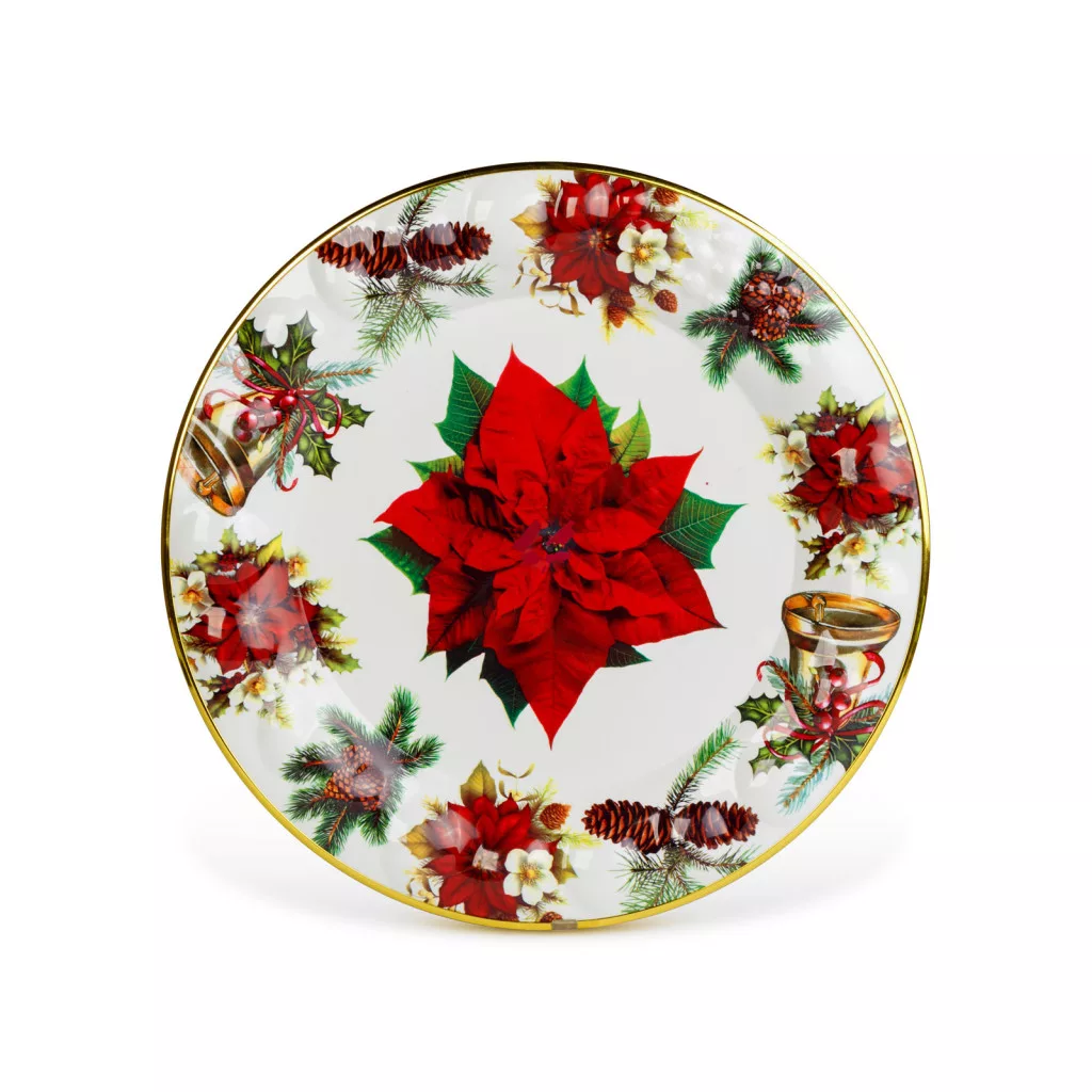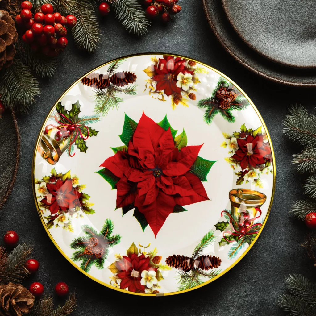 Ez a stílusos, ünnepi mintás karácsonyi tányér tökéletes választás az ünnepi asztal feldíszítéséhez. A 37,5 cm átmérőjű, mikulkásvirággal díszített tányéron klasszikus karácsonyi motívumok – mikulásvirág, fenyőág, toboz – jelennek meg. Tartós műanyagból készült, így könnyű, mégis strapabíró, és ideális sütemények, aprósütemények vagy előételek tálalására az ünnepi alkalmak során.
