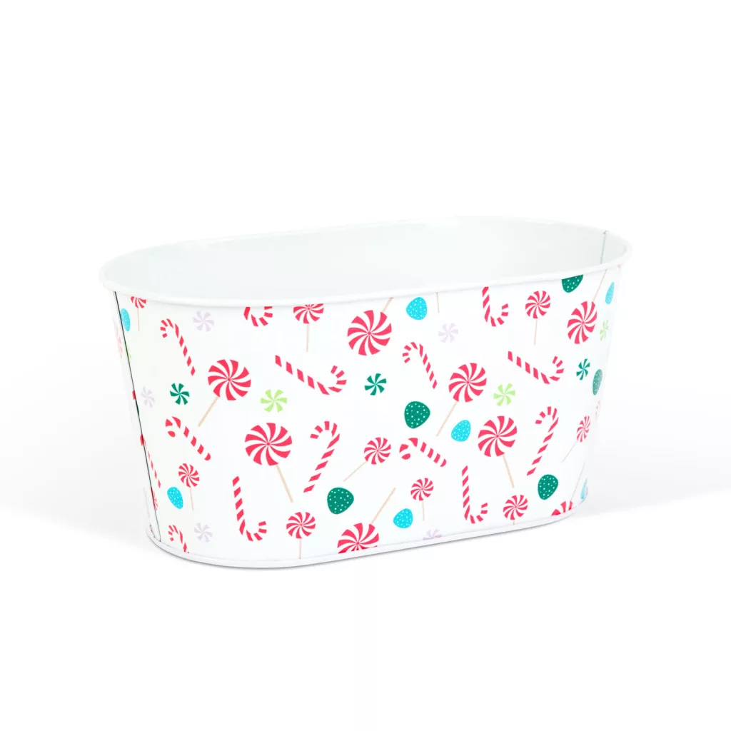 Karácsonyi fém kosár - cukorbot mintás - 19 x 11,5 x 9,5 cm