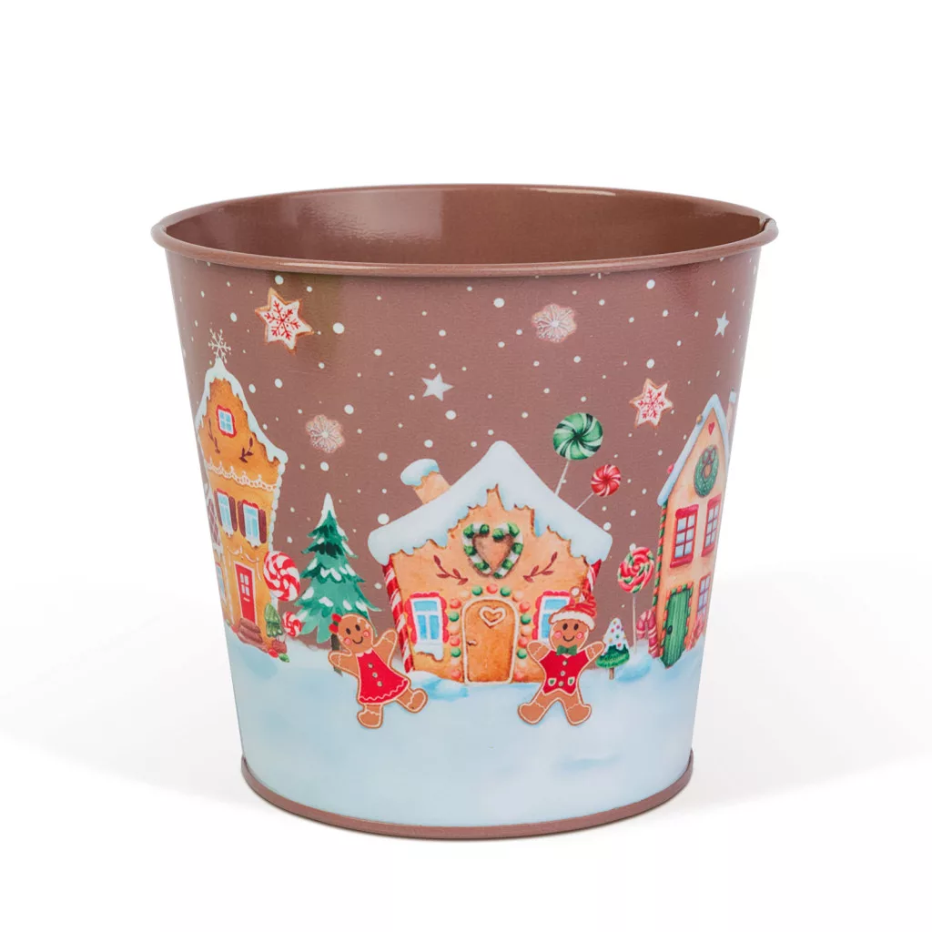 Karácsonyi dekoráció - fém kaspó, vödör - Mézeskalács - 13 x 11 cm