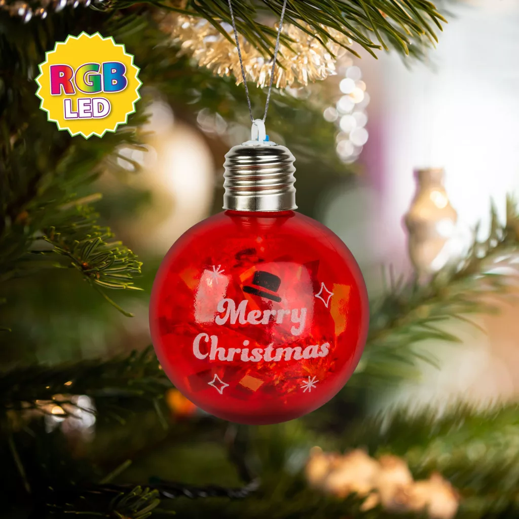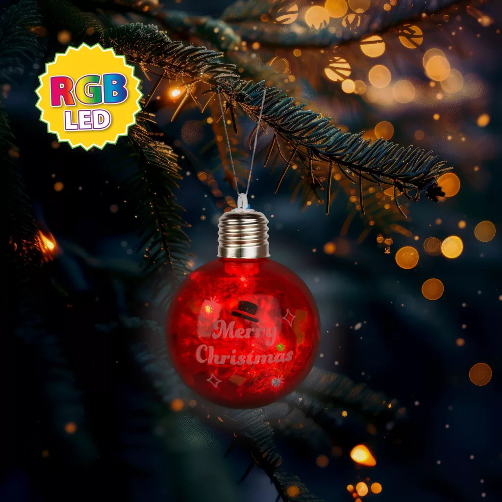 Karácsonyi LED-es gömb - RGB LED - átlátszó - műanyag - 8 cm - 3 x LR44