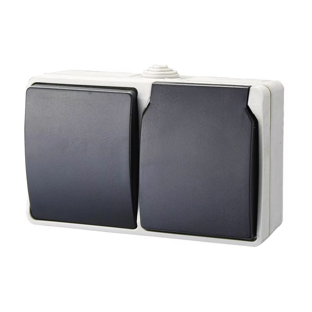 AQUATOP 9873H falon kívüli váltókapcsoló és dugalj, 1 billenő, 1 aljzat, vízszintes, 10 A/16 A, IP54, szürke