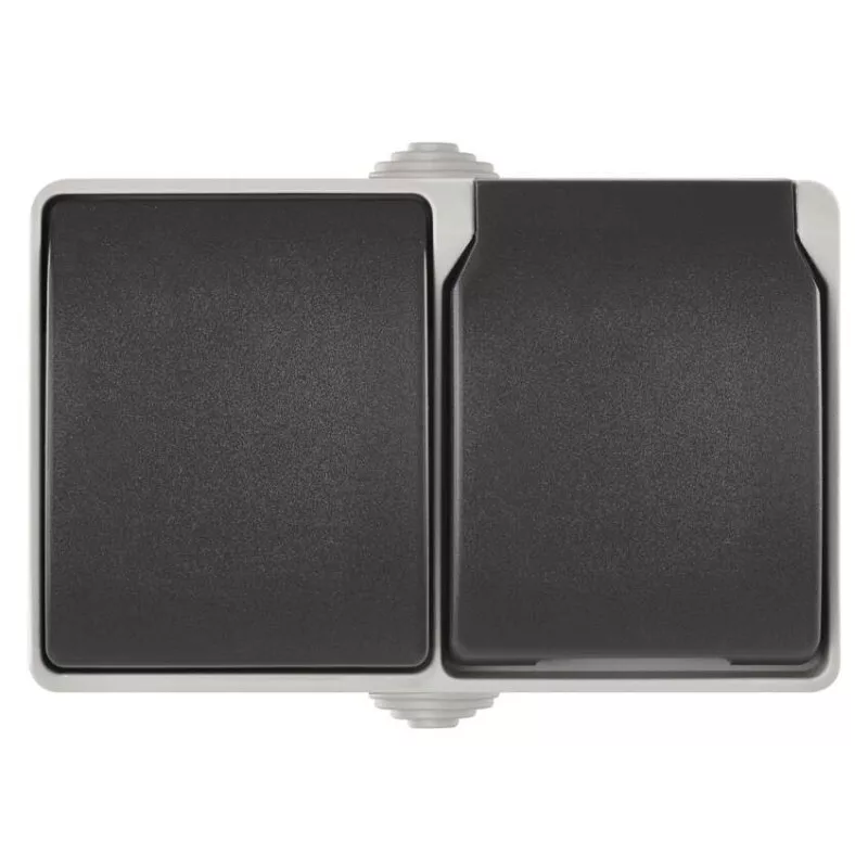 áramerősség: 16 A/10 AX|dizájn: német típusú aljzat|értékesítési csomagolás: 1 db, PE csomag|feszültség: aljzat 250 V~/16 A max.; kapcsoló 250 V~, 10AX|háttérvilágítás: nem|kapcsolattípus: csavaros bilincs|magasság: 92 mm|márka: EMOS|mélység: 55 mm|összeszerelés módja: falra|szélesség: 127 mm|szín: szürke-fekete|termék: 6. sz. váltakozó kapcsoló és szimpla foglalat földelőcsapokkal és fedéllel|típus: dupla vízálló -1 szimpla foglalat + 1 váltakozó kapcsoló|védettség: IP44