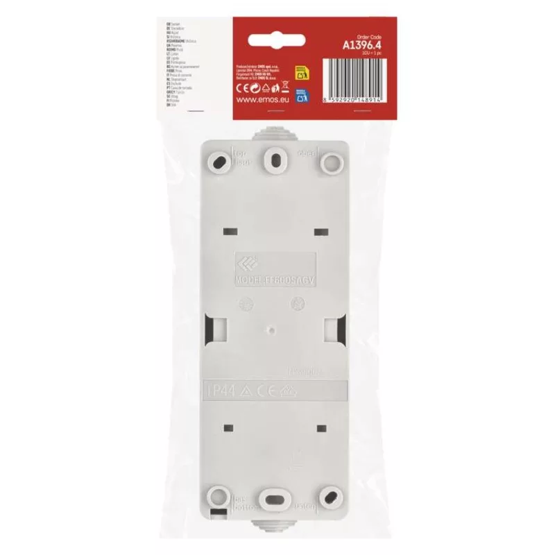 áramerősség: 16 A/10 AX|dizájn: német típusú aljzat|értékesítési csomagolás: 1 db, PE csomag|feszültség: 250 V~|háttérvilágítás: nem|kapcsolattípus: csavaros bilincs|magasság: 178 mm|márka: EMOS|mélység: 55 mm|összeszerelés módja: falra|szélesség: 65 mm|szín: szürke-fekete|termék: 6. sz. váltakozó kapcsoló és szimpla foglalat földelőcsapokkal és fedéllel|típus: 2 minket. vízálló - függőleges szerelés|védettség: IP44