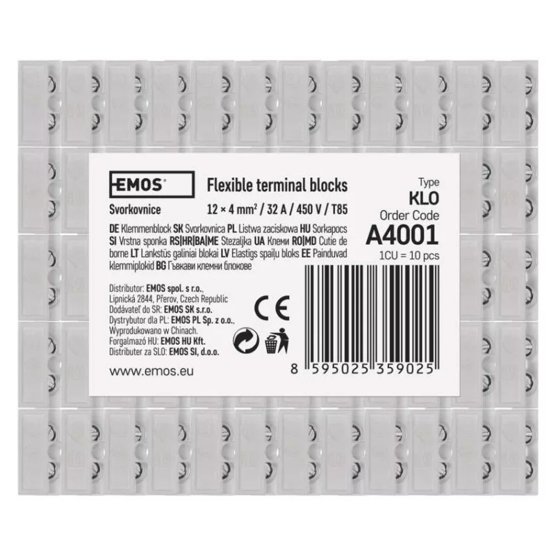 értékesítési csomagolás: 10 db, fólia|névleges áram: 32 A|névleges feszültség: 450 V~|termék: sorkapocs|vezeték keresztmetszethez: 12× 1–4 mm2