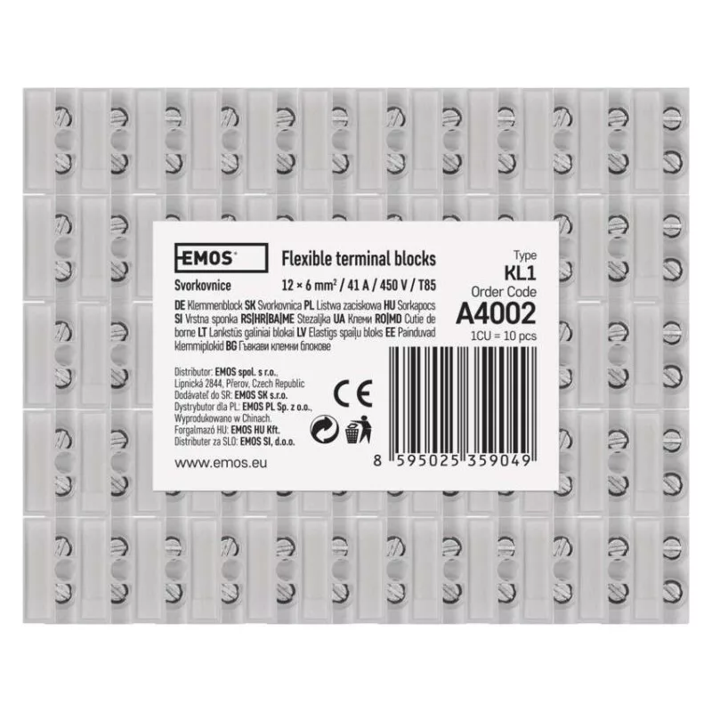 értékesítési csomagolás: 10 db, fólia|névleges áram: 41 A|névleges feszültség: 450 V~|termék: sorkapocs|vezeték keresztmetszethez: 12× 1,5–6 mm2