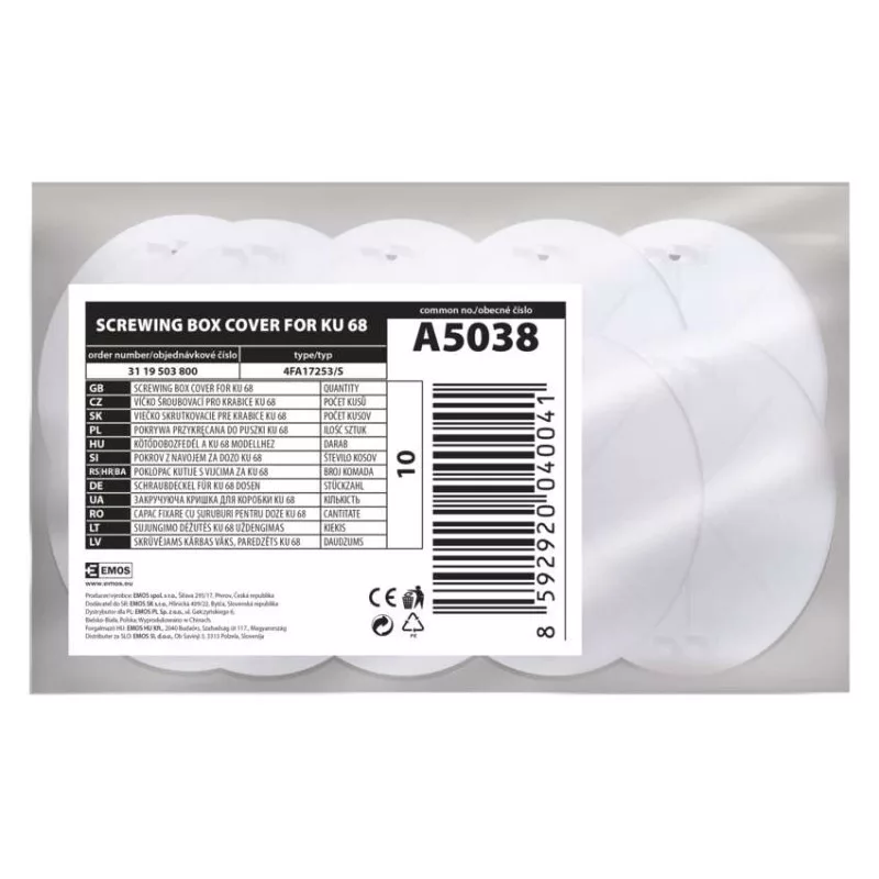 értékesítési csomagolás: 10 db, PE csomag|méretek: 75 mm átmérő, 3 mm vastagság|termék: fedél|tervezett termékekhez: dobozok takarása 60 mm-es osztásközű tartozékkal, rögzítőcsavarokkal