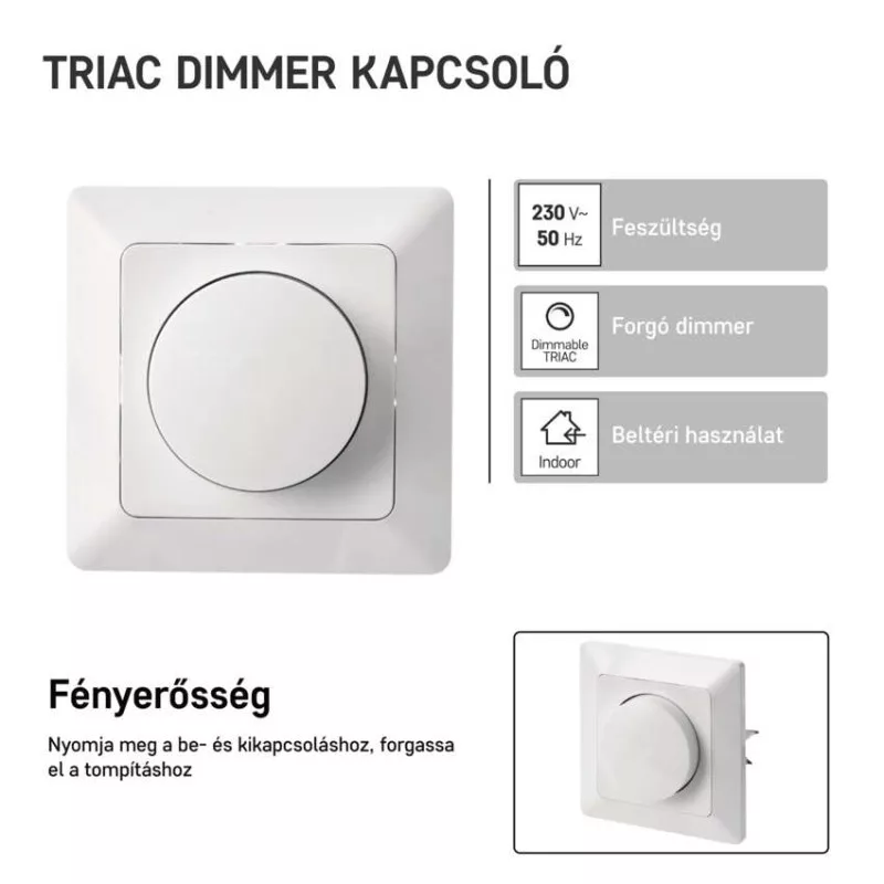 áramerősség: –|dizájn: #|értékesítési csomagolás: 1 db, akasztható|feszültség: 230 V~, 50 Hz|háttérvilágítás: –|kapcsolattípus: –|márka: EMOS|összeszerelés módja: nincs megadva|szín: fehér (fényes)|termék: kapcsolókészülék szabályozható LED izzókhoz, forgatható és nyomógombos vezérléshez|típus: forgatható és nyomógombos vezérléshez|védettség: nincs megadva