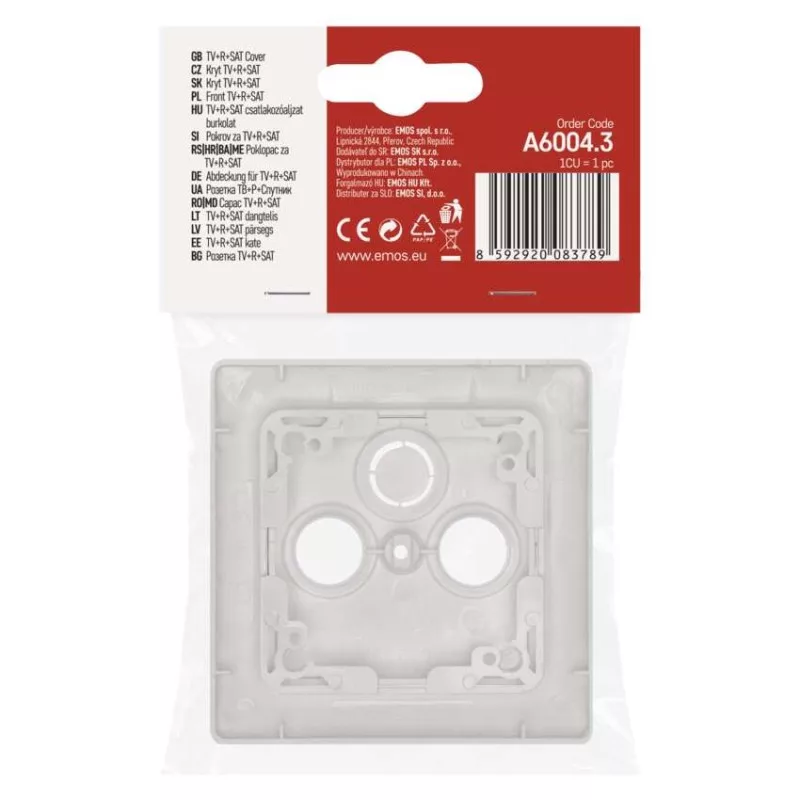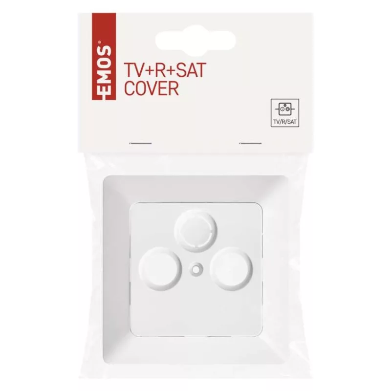 áramerősség: –|dizájn: nincs megadva|értékesítési csomagolás: 1 db, akasztható|feszültség: nincs megadva|háttérvilágítás: –|kapcsolattípus: –|márka: EMOS|összeszerelés módja: dobozba|szín: fehér (fényes)|termék: aljzat fedél TV+R+SAT|típus: szimpla|védettség: nincs megadva