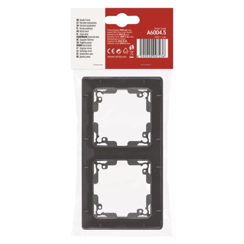 áramerősség: –|dizájn: nincs megadva|értékesítési csomagolás: 1 db, akasztható|feszültség: vízszintes és függőleges beszerelésre|háttérvilágítás: –|kapcsolattípus: –|márka: EMOS|összeszerelés módja: dobozba|szín: anthracite|termék: dupla keret|típus: kétszeres|védettség: nincs megadva