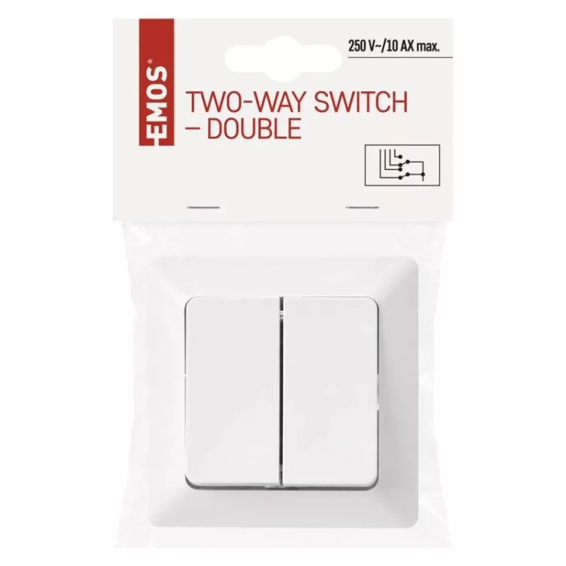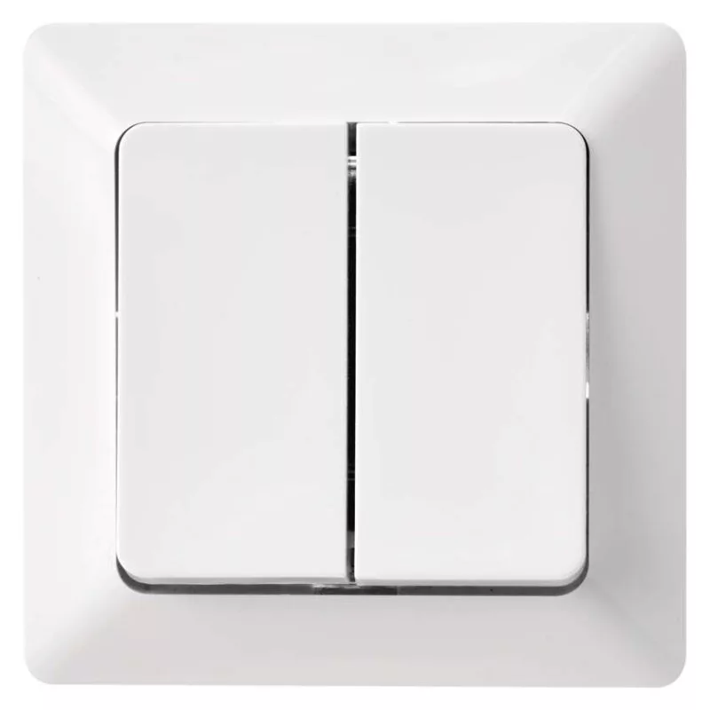 dizájn: nincs megadva|értékesítési csomagolás: 1 db, akasztható|feszültség: 250 V~/10 AX|összeszerelés módja: dobozba|szín: fehér (fényes)|termék: dupla váltókapcsoló 6+6 (5B)|típus: 2 gomb|védettség: IP20