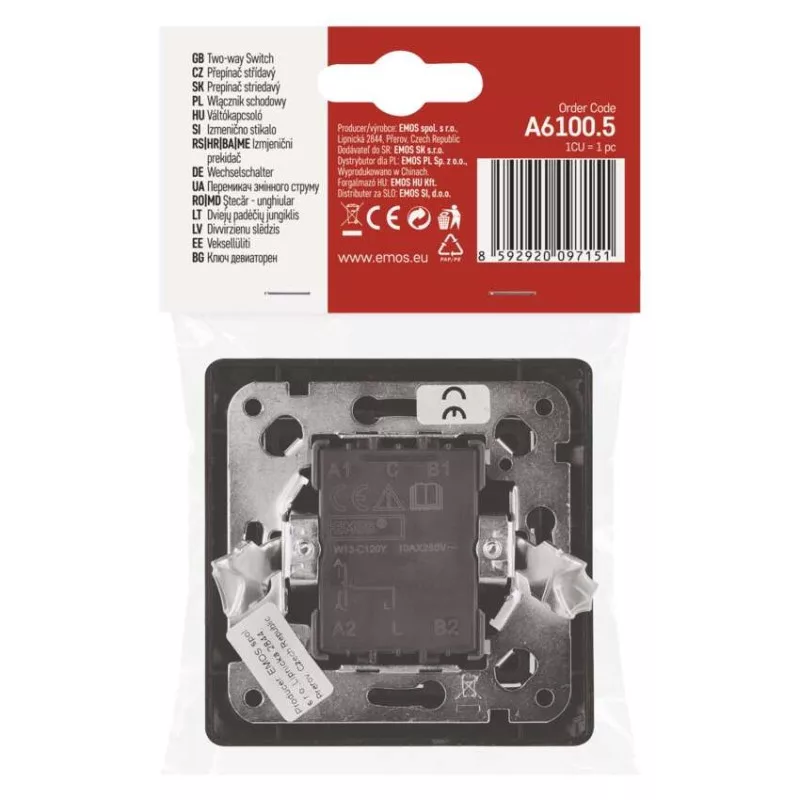 dizájn: nincs megadva|értékesítési csomagolás: 1 db, akasztható|feszültség: 250 V~/10 AX|összeszerelés módja: dobozba|szín: anthracite|termék: 6. sz. váltakozó kapcsoló|típus: 1 gomb, lépcsőházi|védettség: IP20