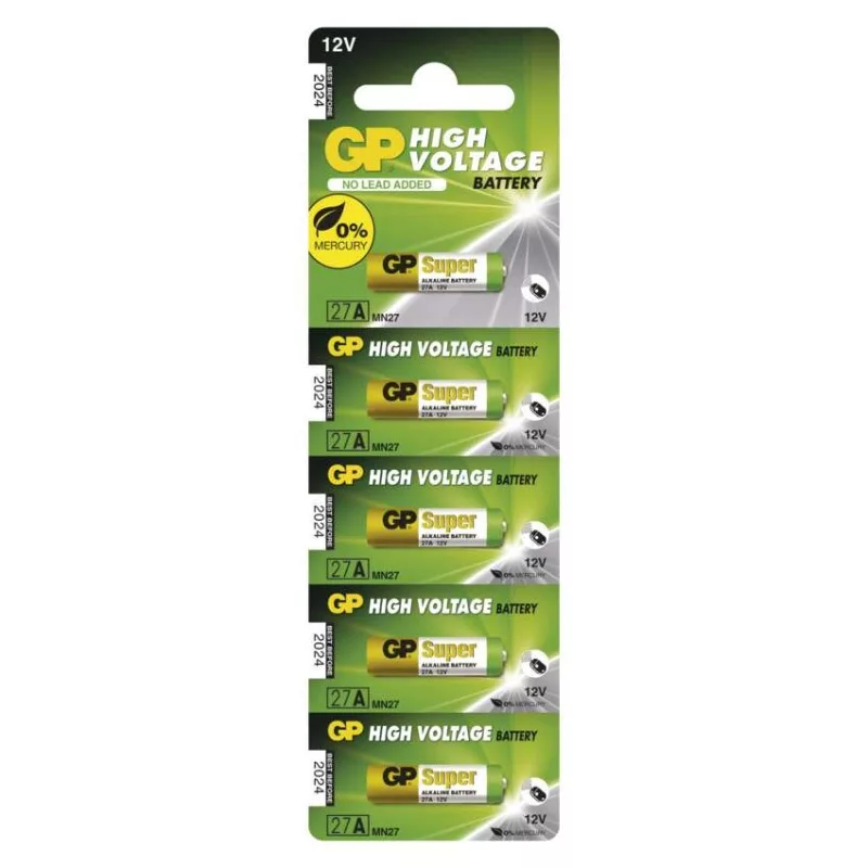 akkumulátor mérete: nincs megadva|értékesítési csomagolás: 5 db, bliszter|feszültség: 12 V|kapacitás: 20 mAh (20 kohm-os terhelés esetén)|kategória/sorozat: High Voltage|kémiai összetétel: alkáli-speciális|márka: GP|max. tárolási idő: 3 év|méretek: 8,0 × 28,2 mm|súly: 4,4 g|típus: GP 27A (A27, MN27, A90)|töltési ciklusok száma: nem tölthető|tölthető: nem|üzemi hőmérséklet: 0 °C és +45 °C