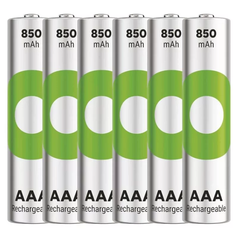 akkumulátor mérete: AAA|értékesítési csomagolás: 6 db, kis papír doboz|feszültség: 1,2 V|kapacitás: 850 mAh|kategória/sorozat: Tölthető|kémiai összetétel: NiMH|márka: GP|max. tárolási idő: nincs megadva|méretek: 14,5 × 50,5 mm|súly: 14,5 g|típus: HR03 (AAA mikroceruza)|töltési ciklusok száma: több, mint 500|tölthető: igen|üzemi hőmérséklet: -20 °C és +50 °C