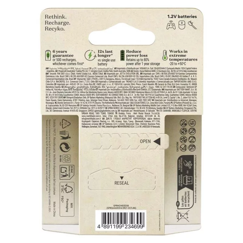GP ReCyko NiMH Akkumulátor HR03 (AAA) 850mAh 6db