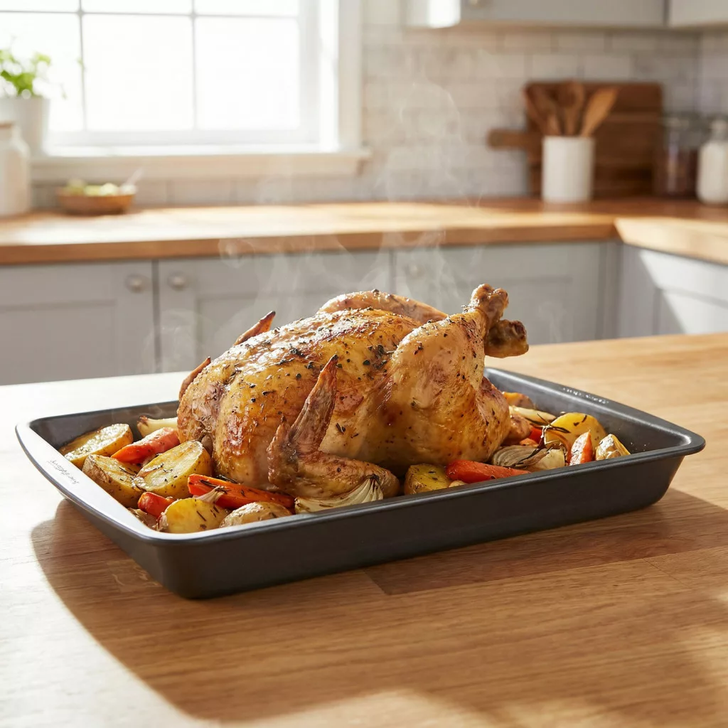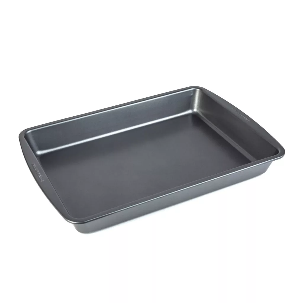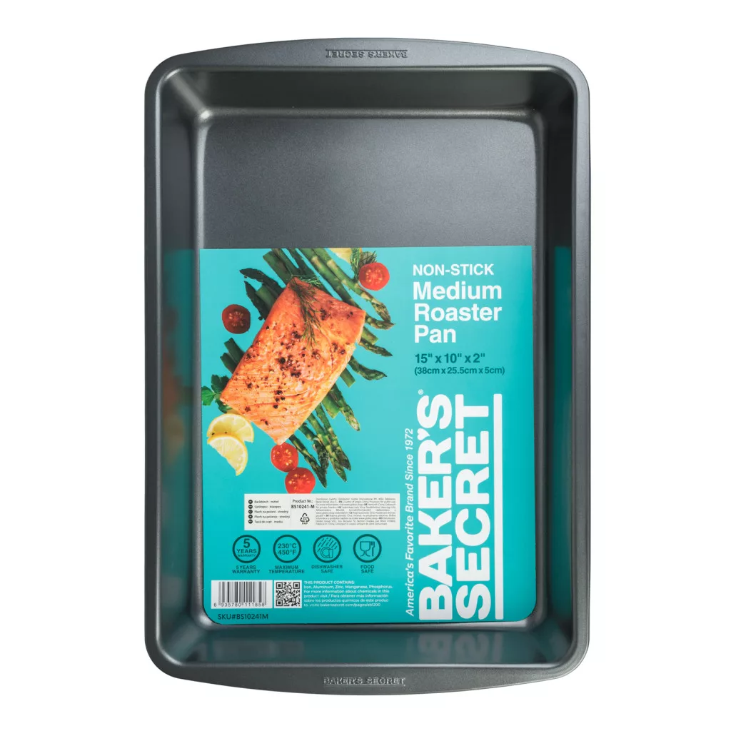 Készítsen finom sülteket, tésztákat és egytálételeket a Baker’s Secret Essential Line kiváló minőségű sütőtepsijével! A masszív, mégis könnyű 0,5 mm vastag anyag biztosítja az egyenletes hőeloszlást, így az ételek minden alkalommal tökéletesen átsülnek. A tapadásmentes bevonatnak köszönhetően az étel könnyen kiemelhető, a tepsi pedig egyszerűen tisztítható. Kényelmesen megfogható pereme biztonságos és stabil kezelést biztosít még forró állapotban is. Tökéletes választás süteményekhez, húsokhoz, zöldségekhez és minden olyan ételhez, amit tepsiben szeret sütni!