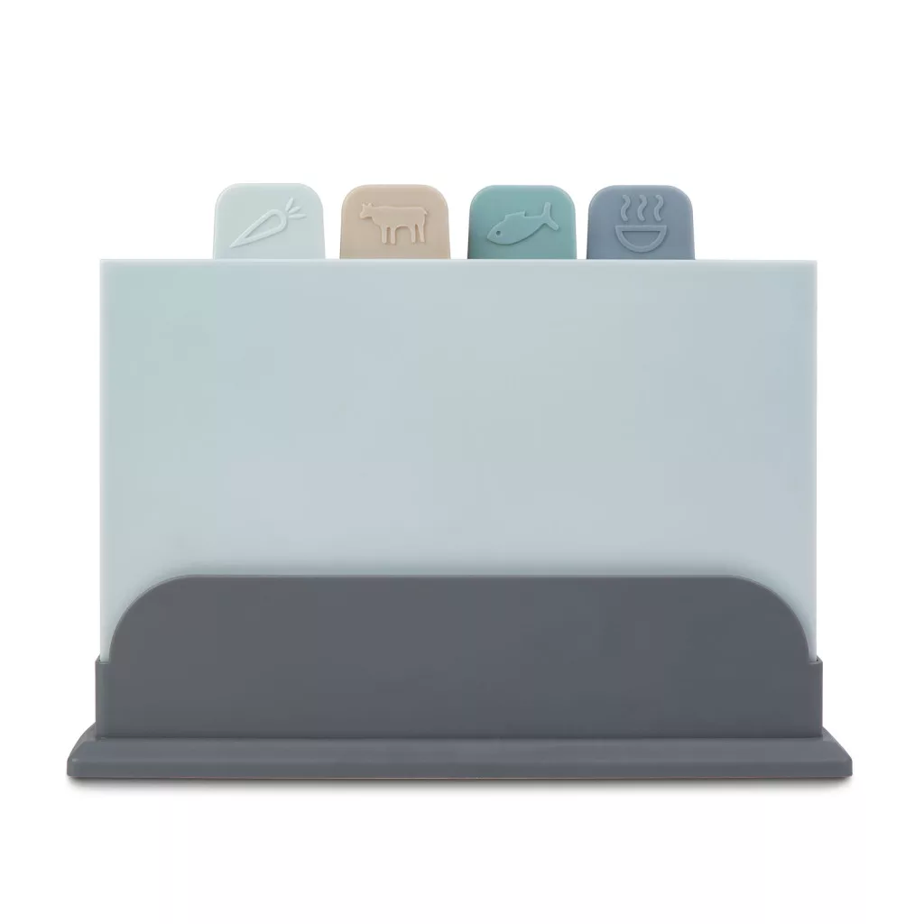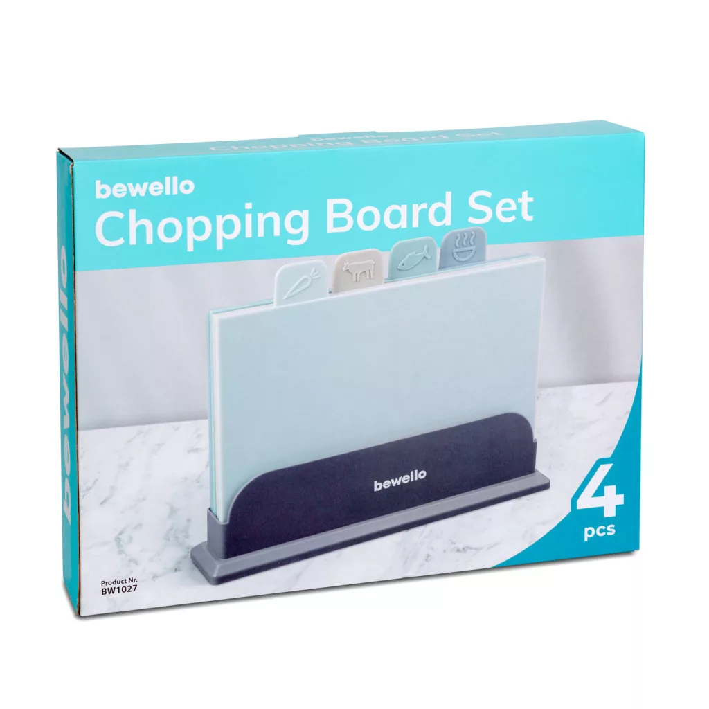 A szett tartalmaz 4 db különböző színű vágódeszkát: A világosszürke deszka a zöldségekhez, a bézs színű húsokhoz, a zöld a halhoz és a kékes-szürke pedig egyéb hozzávalókhoz használható. Ezáltal könnyedén megkülönböztethető, hogy melyik deszkát érdemes használni az adott alapanyag feldolgozásához. A deszkák mérete és formája ideális az alapanyagok hatékony vágásához és aprításához. A műanyag könnyű tisztítást tesz lehetővé, így könnyedén eltávolíthatóak a maradék anyagok és szennyeződések.