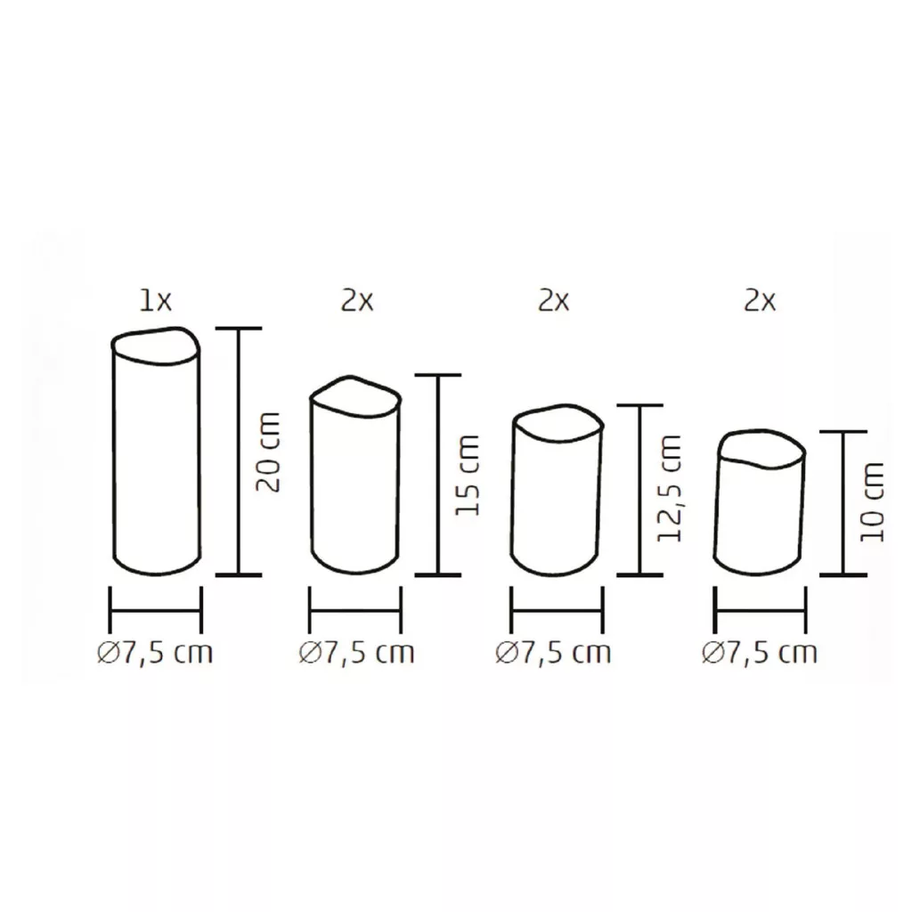 gyertyák: 2 x 1,5 V (AA) elem, nem tartozék / távirányító: CR 2025 elem, tartozék