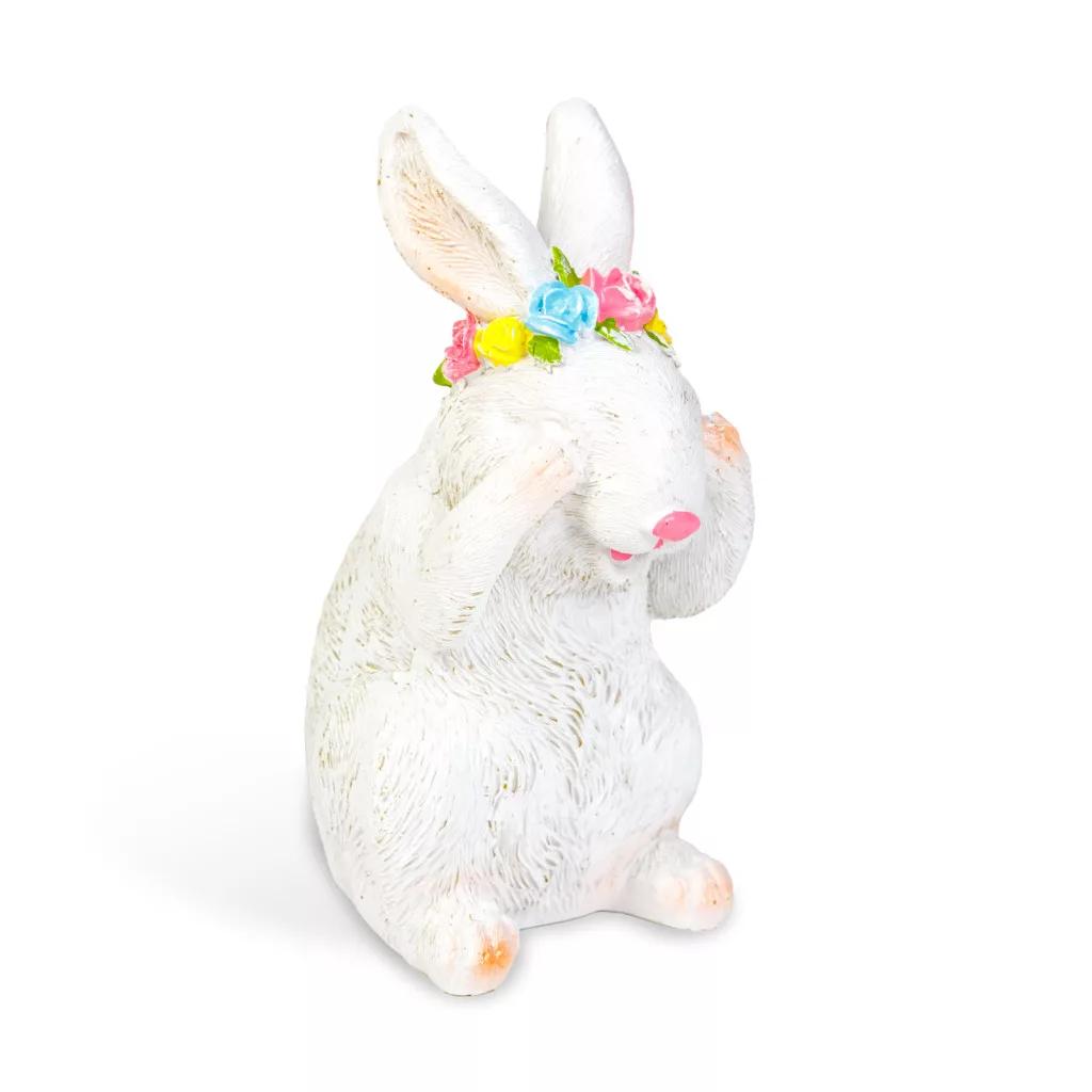 Varázsoljon tavaszi hangulatot otthonába ezzel a bájos húsvéti nyuszidekorációval! A kétféle változatban kapható nyuszik részletgazdag kidolgozásukkal és kedves megjelenésükkel remek kiegészítői lehetnek ünnepi asztaldíszeknek, polcoknak vagy ajándékcsomagoknak. Az egyik nyuszi virágokkal díszített koszorút visel, míg a másik egy szép virágszálat tart a kezében.