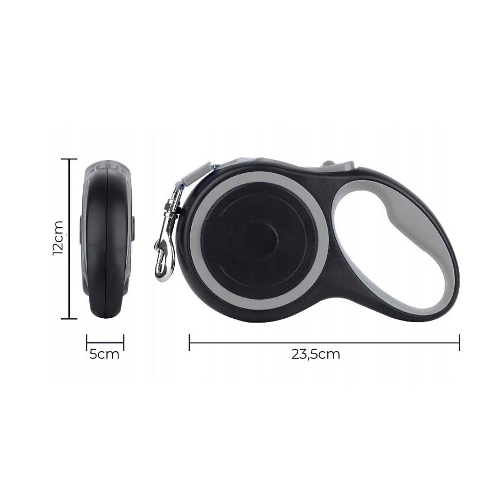 A visszahúzható póráz akár 8 méterre is megnyúlik. A termék tökéletesen illeszkedik minden kézbe. A szilárd fogantyú lehetővé teszi a kisállat stabil irányítását, valamint egyszerű használatot tesz lehetővé akár egy kézzel is! Ezenkívül a csúszásmentes fogantyú a kéz méretéhez igazodik, így fokozott stabilitás jellemzi, javítja a kényelmet és a biztonságot séta közben. A póráz egyszerű fékrendszerrel rendelkezik, amely a másodperc törtrésze alatt leállítja az öv mozgását. Csak csúsztassa maga felé a gombot, és nyomja le - ezután a zár aktiválódik. A végére karabiner van rögzítve, amelyre a kedvence nyakörve is ráhelyezhető.