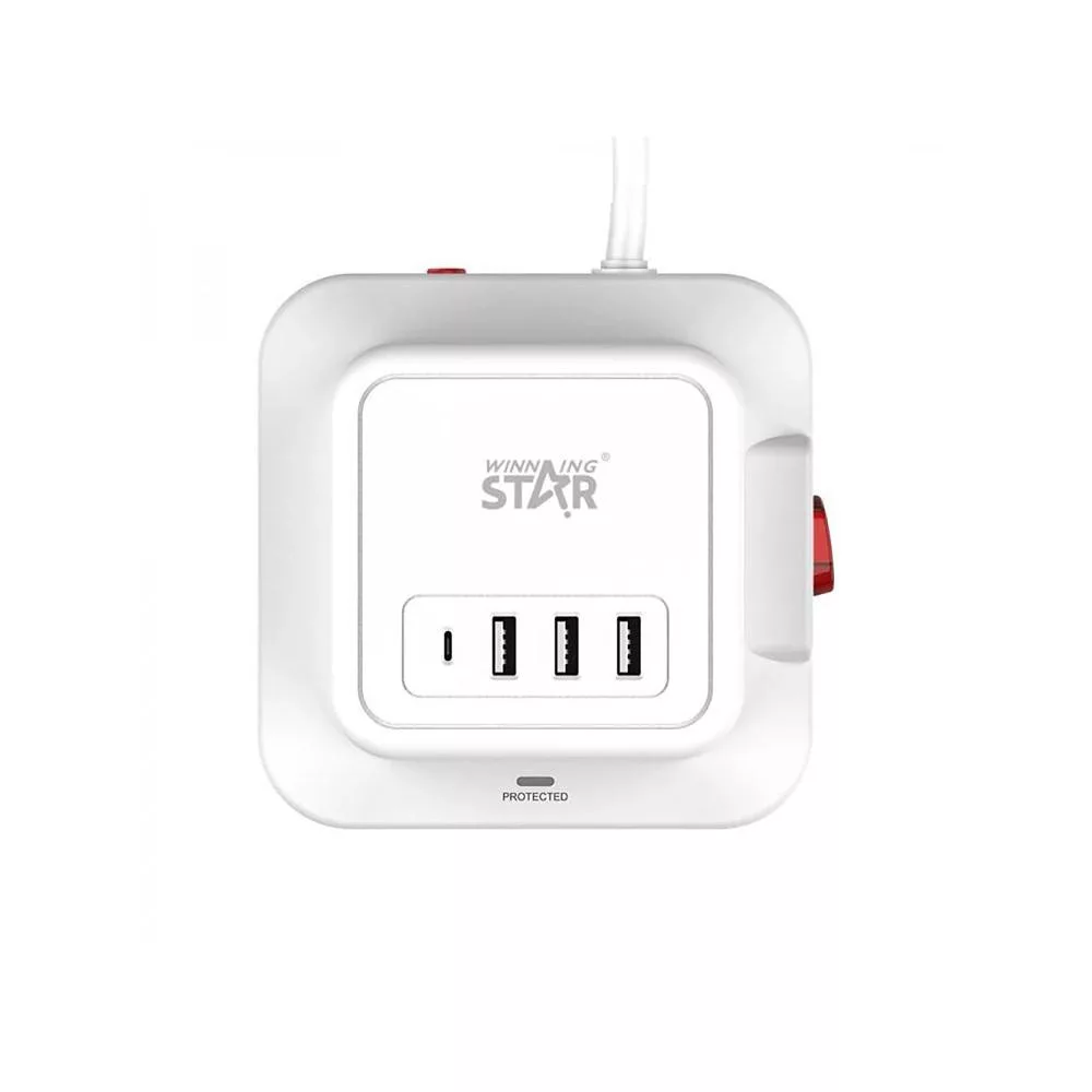 WinningStar - Kocka elosztó - 12-es + 3 x USB + 1 x Type-C - 3 m