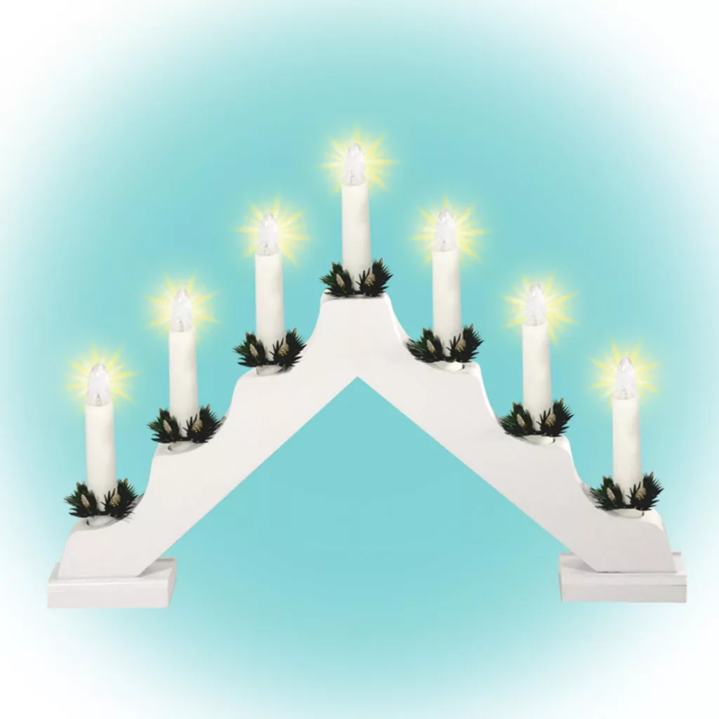 Home KAD 03 gyertyapiramis, 7 db izzó, fehér festett fa, L7D