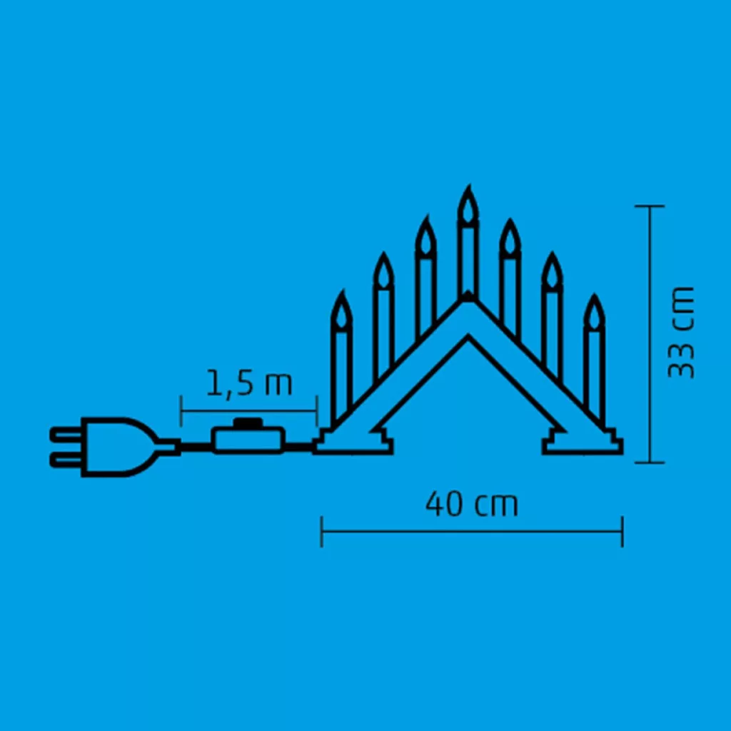 A 7 db piros gyertyaláng alakú izzó által keltett kellemes, meghitt fény mellett a 1,5 m hosszú fehér vezeték garantálja a felhasználói kényelmet és a dísz könnyű elhelyezhetőségét bárhol a lakásban.