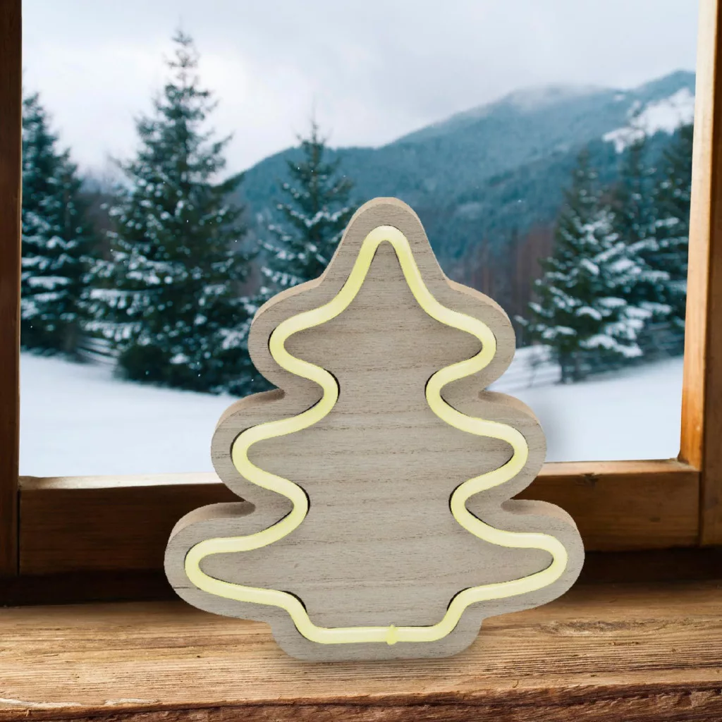 Szeretne egy kis melegséget csempészni otthonába a hideg téli napokon? A KAD 28 fenyő formájú fa asztaldísz, tökéletes választás erre a célra! A LED-es neon-light szalag melegfehér fényt áraszt, amely kellemes, barátságos atmoszférát teremt a szobában.