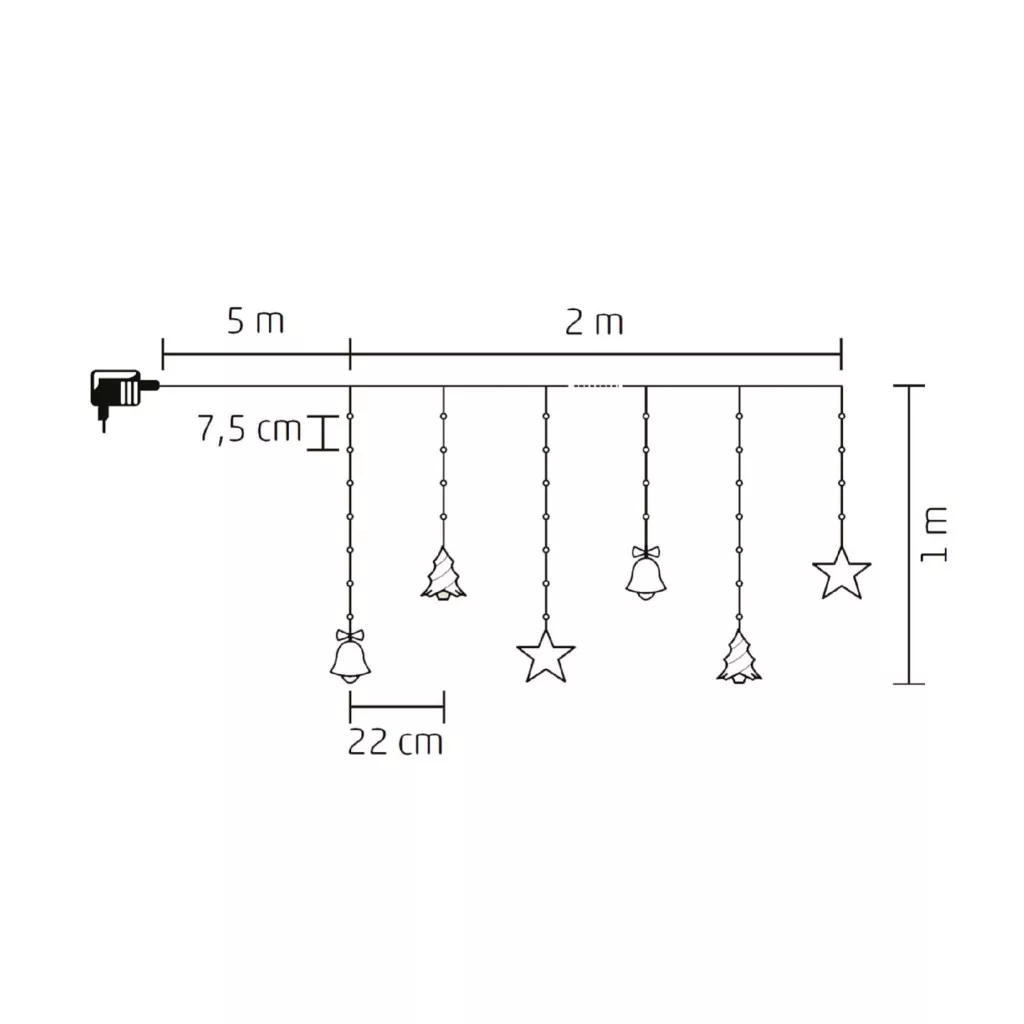 Home KAF 11/WH micro LED-es figurás fényfüggöny, 2 m / 186 db hidegfehér LED, harang / fenyő / csillag figurákkal, hálózati adapter, kül- és beltéri kivitel