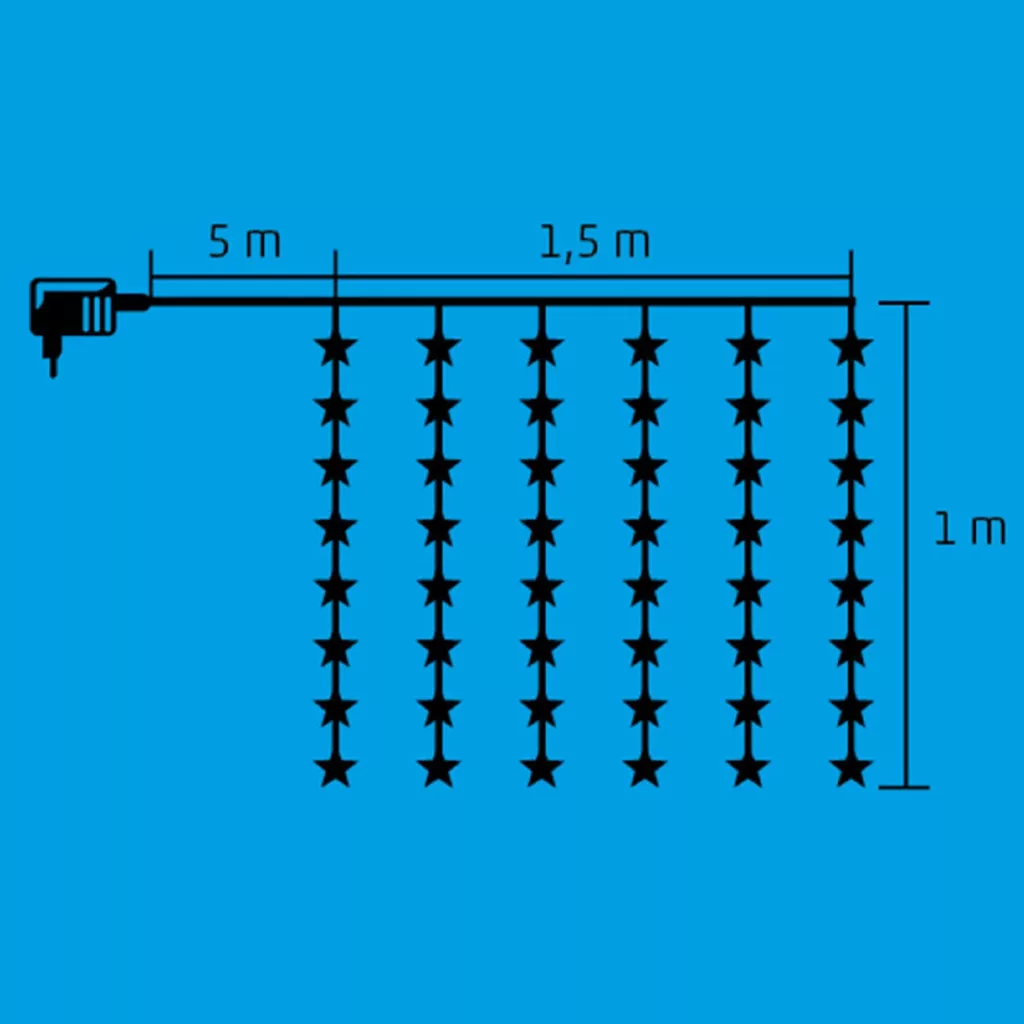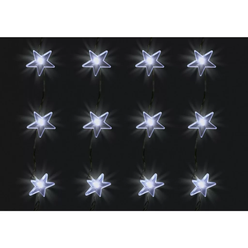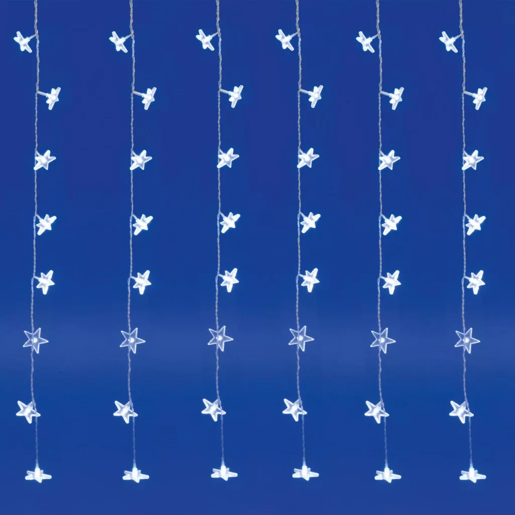Ez a különleges fényfüggöny 48 hidegfehér LED-del van felszerelve, amelyek minden egyes 5 cm-es csillagban elhelyezkednek, így csillogó fényárban úszik majd az otthona. Az átlátszó vezeték diszkréten simul bele a környezetbe, hogy a csillagok ragyogása legyen a középpontban.