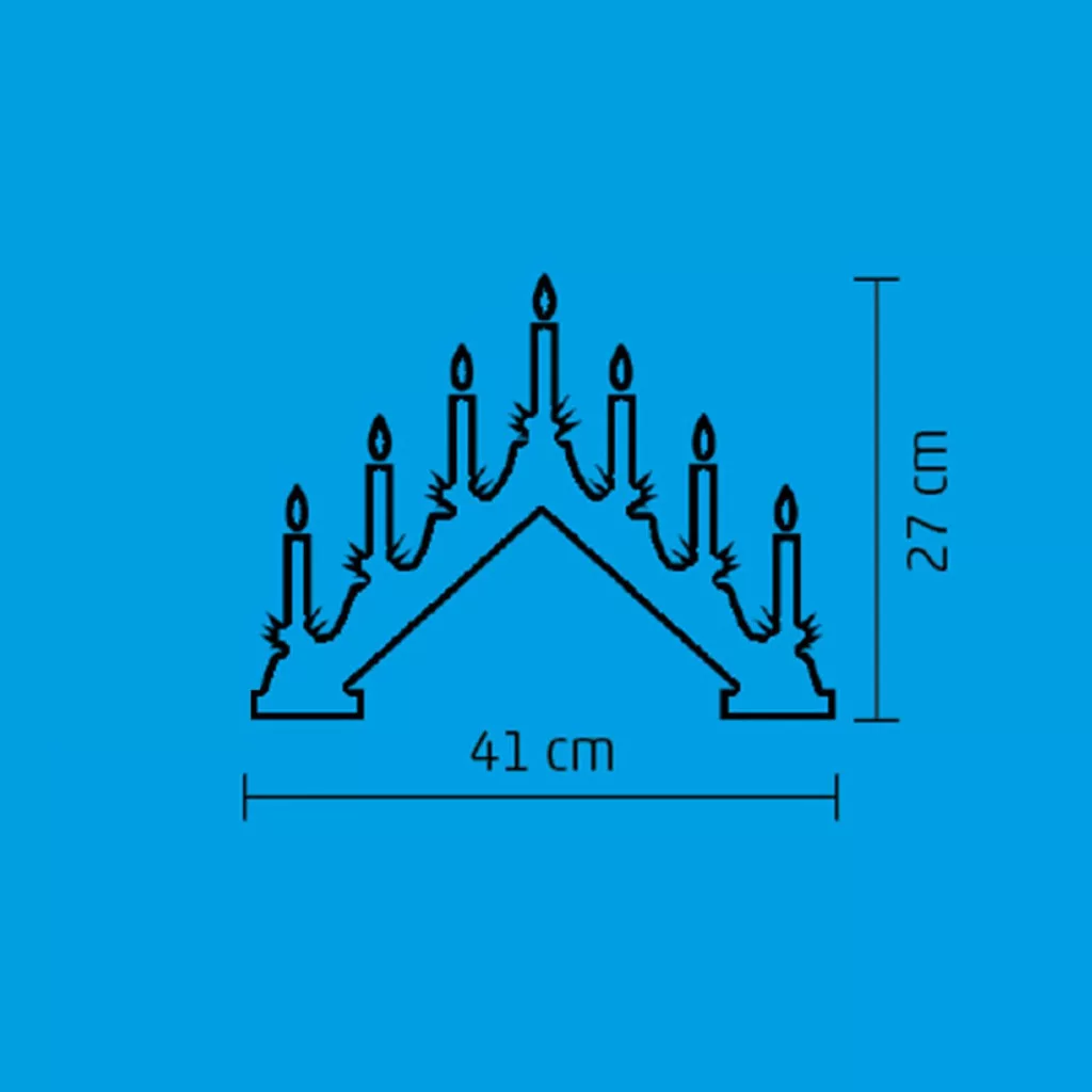 Ez a beltéri kivitelű gyertyapiramis 7 darab melegfehér állófényű LED-del van felszerelve, amelyek élethű gyertyafényt biztosítanak anélkül, hogy a hagyományos gyertyák veszélyei miatt kellene aggódnia. Az anyagában színezett piros műanyag kialakítás elegáns és klasszikus megjelenést kölcsönöz a dekorációnak, miközben tökéletesen illik a karácsonyi hangulathoz. A 10 cm magas gyertyák kellemesen eloszlanak a piramis formában, így szemet gyönyörködtető látványt nyújtanak bármely polcon vagy asztalon. A gyertyapiramis tápellátása 2 darab 1,5 V-os AA elemmel történik (nem tartozék), így bárhol elhelyezheti anélkül, hogy konnektorhoz lenne kötve.