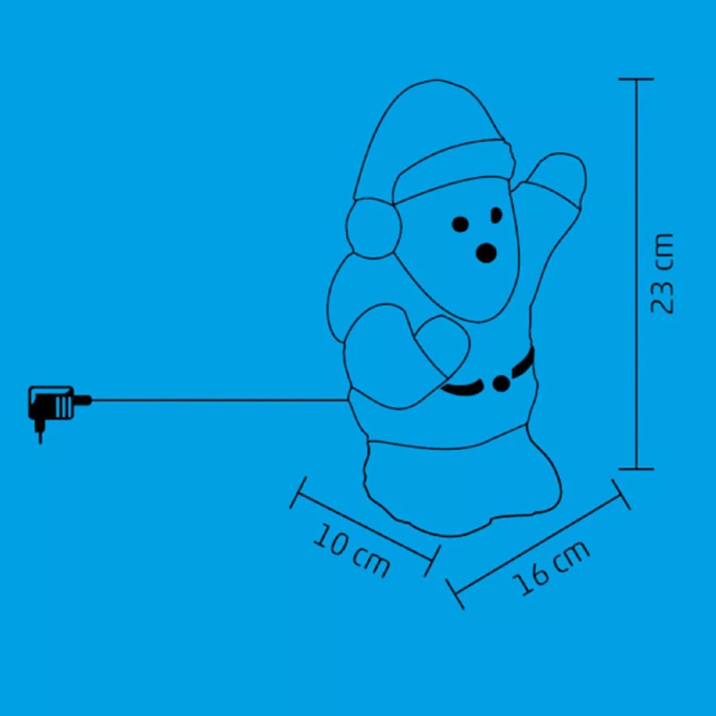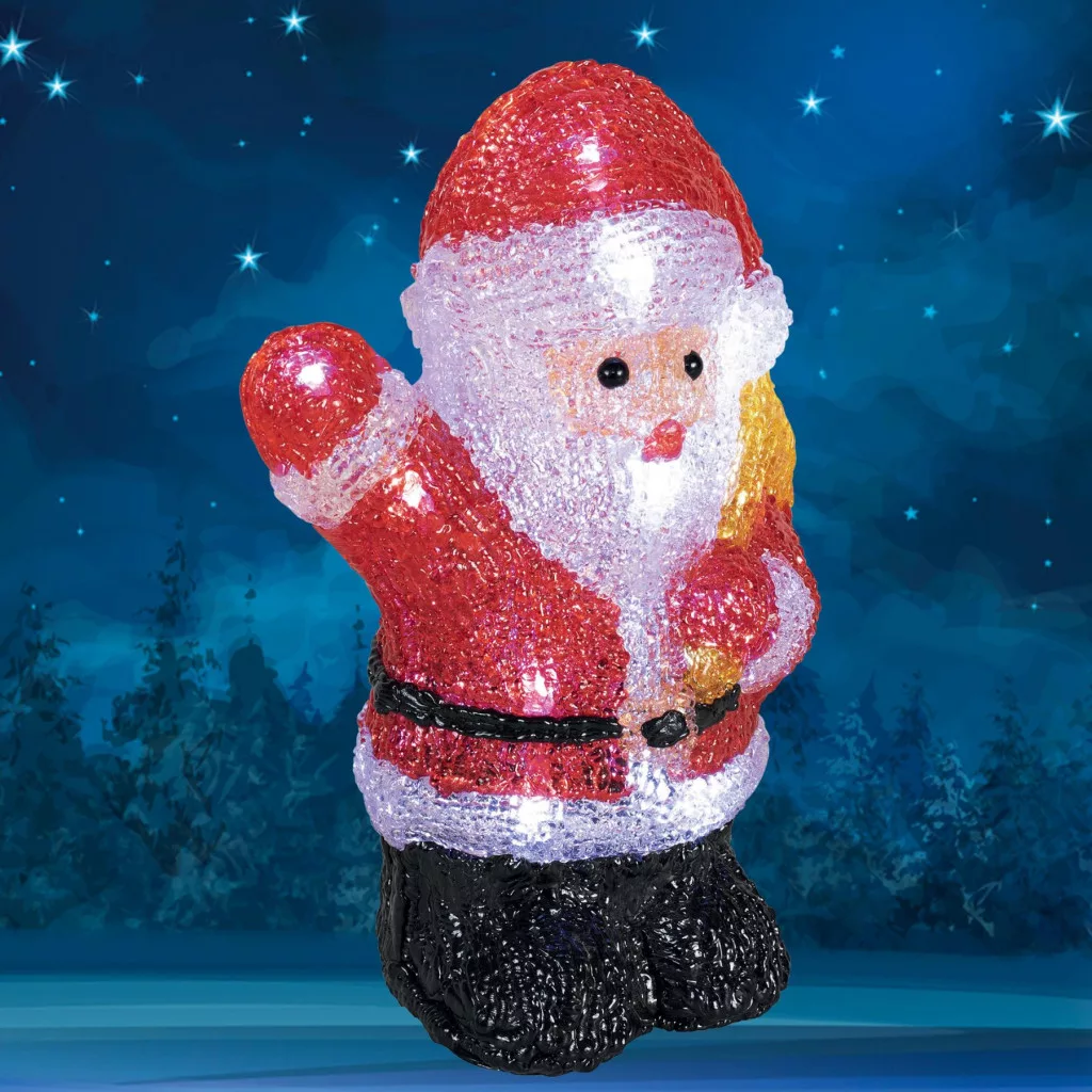 Ez a bájos dekoráció nem csak örömet hoz otthonába, hanem egyedi fényjátékkal is gazdagítja ünnepi hangulatát. A színes akril Mikulás 16 hidegfehér LED fényforrással rendelkezik. Kültéren és beltéren is elhelyezheti, így többféleképpen díszítheti vele otthonát.