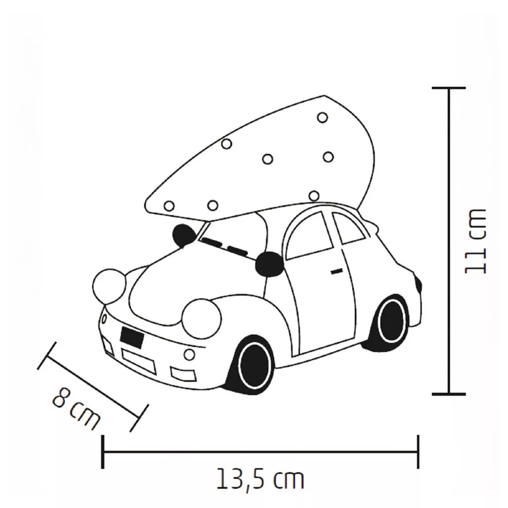 A részletgazdag kidolgozás és a karácsonyi fenyővel díszített autó különlegessé teszi a dekorációt, miközben a LED-ek meleg fénye finoman világítja meg az egész kompozíciót. Beltéri használatra tervezve, a figura tápellátása két 1,5 V-os AAA elemmel történik (nem tartozék), így könnyedén elhelyezhető bármely helyiségben, legyen az egy polc, asztal vagy akár az ablakpárkány. Kompakt méretei (13,5 x 11 x 8 cm) révén ideális választás kisebb helyiségek díszítésére, de bármely ünnepi dekoráció központi eleme is lehet.