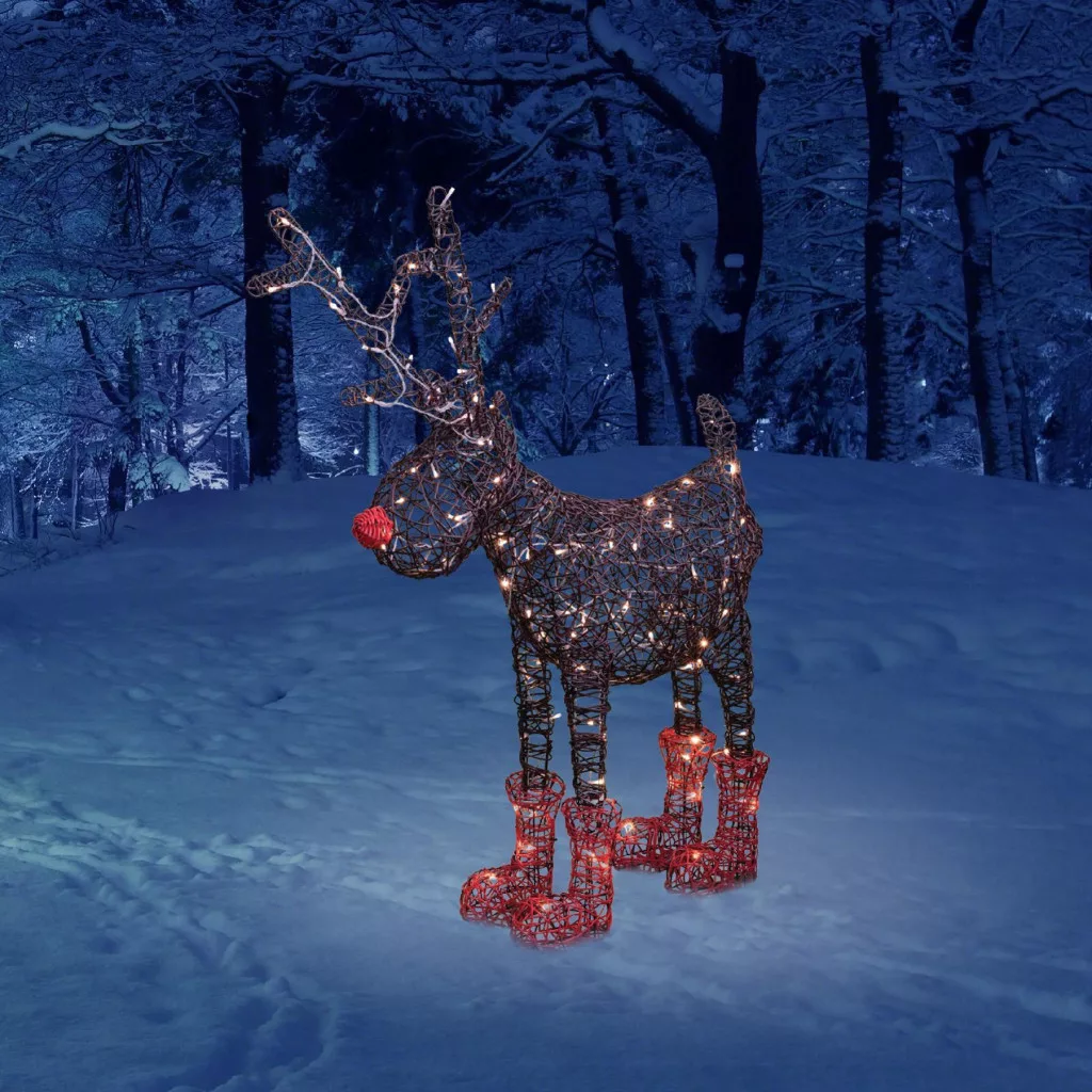 Ez a bájos dekoráció tökéletes választás mind beltéri, mind kültéri felhasználásra, hogy egyedi és varázslatos légkört teremtsen az ünnepi időszakban. A szarvas fémvázzal és műrattan alapanyaggal készül, amely tartósságot és esztétikumot egyesít. A 100 db melegfehér, állófényű LED világítás különleges fényjátékot nyújt, amely hihetetlenül varázslatossá teszi az ünnepi dekorációt.