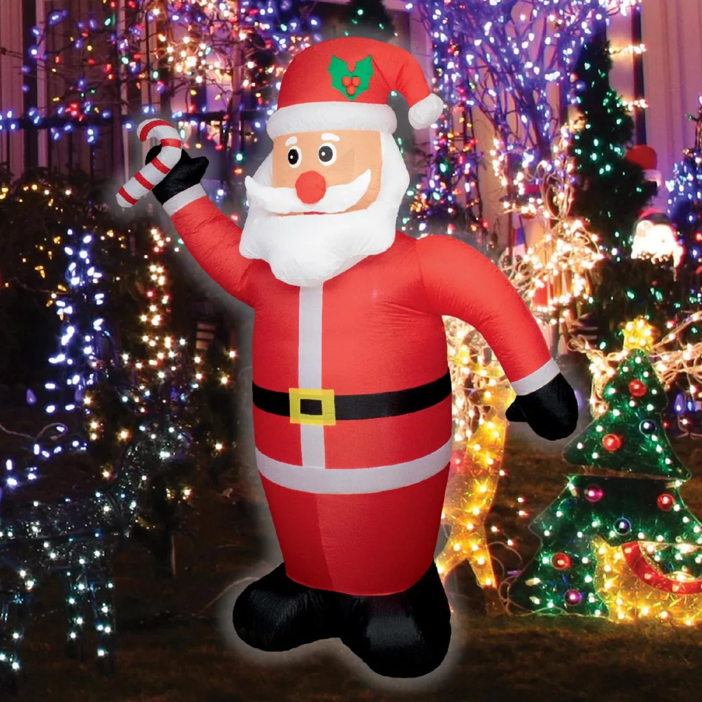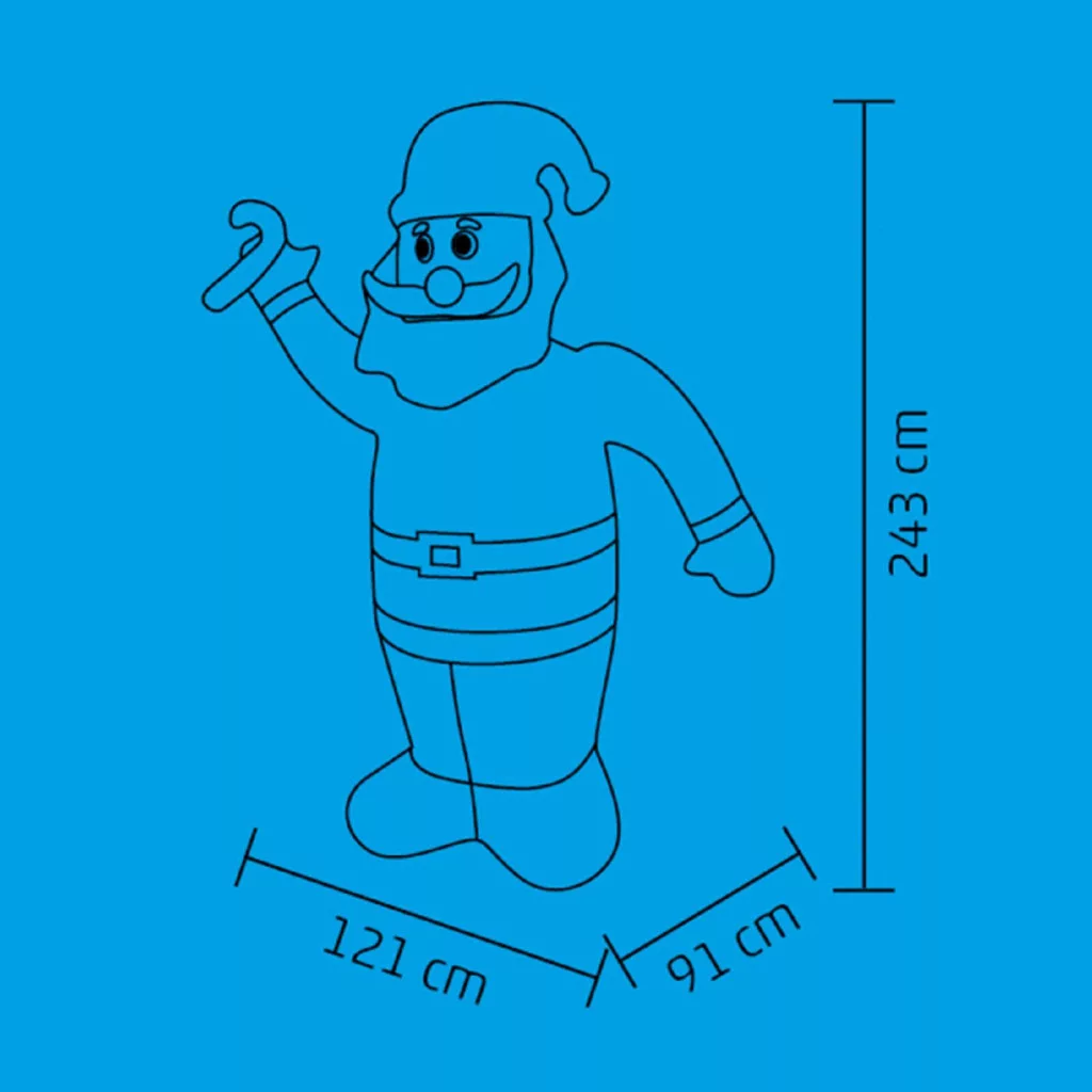 Ez a felfújható Mikulás ellenáll a havazásnak és a csepegő esőnek is. A 3 fehér LED fénye még ünnepibbé varázsolja a környezetet, éjjel és nappal. A beépített ventilátor segítségével villámgyorsan felfújhatja a Mikulást, így kevesebb időt tölt majd készülődéssel és többet ünnepléssel. A csomagban található 6 db leszúrótüske és 3 x 2 m rögzítőzsinór biztosítja a stabil rögzítést, bármilyen területen is helyezze el. A kültéri hálózati adapter és az 1,8 m hosszú adaptervezeték gondoskodik arról, hogy a Mikulás mindig ragyogjon.