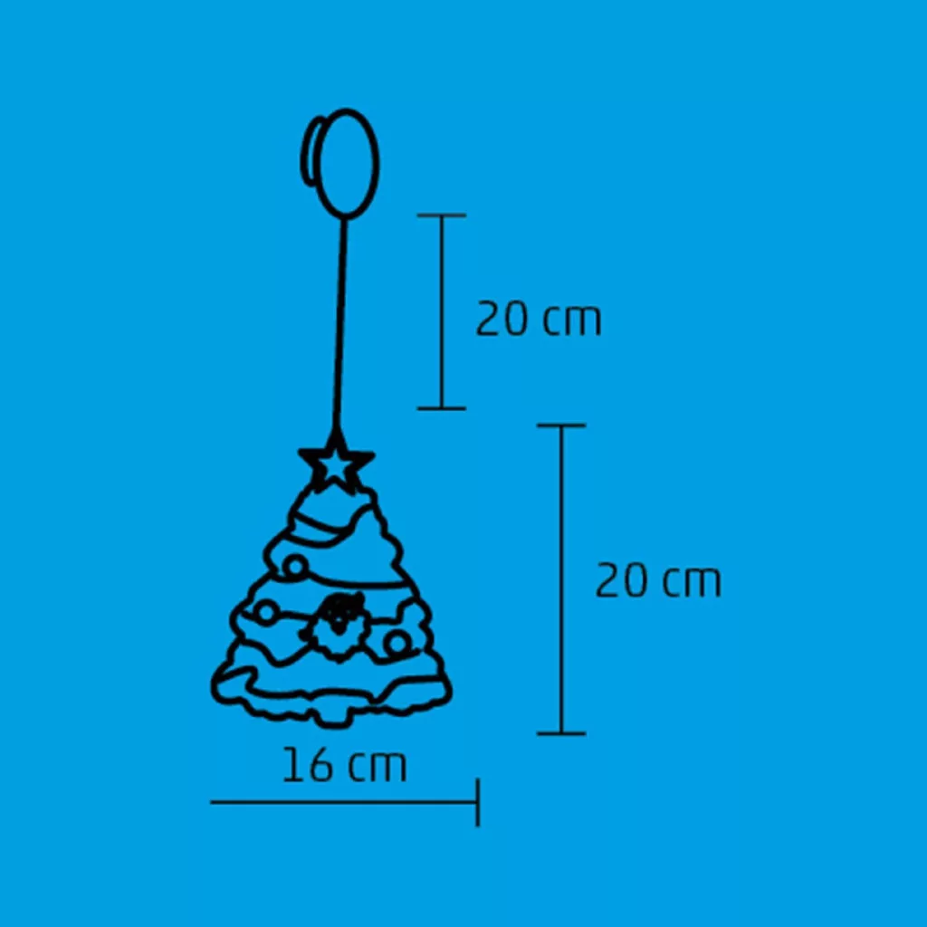 Az átlátszó, 20 cm hosszú vezeték és az öntapadós elemtartó segítségével könnyedén rögzítheti a díszt az ablaküvegre.