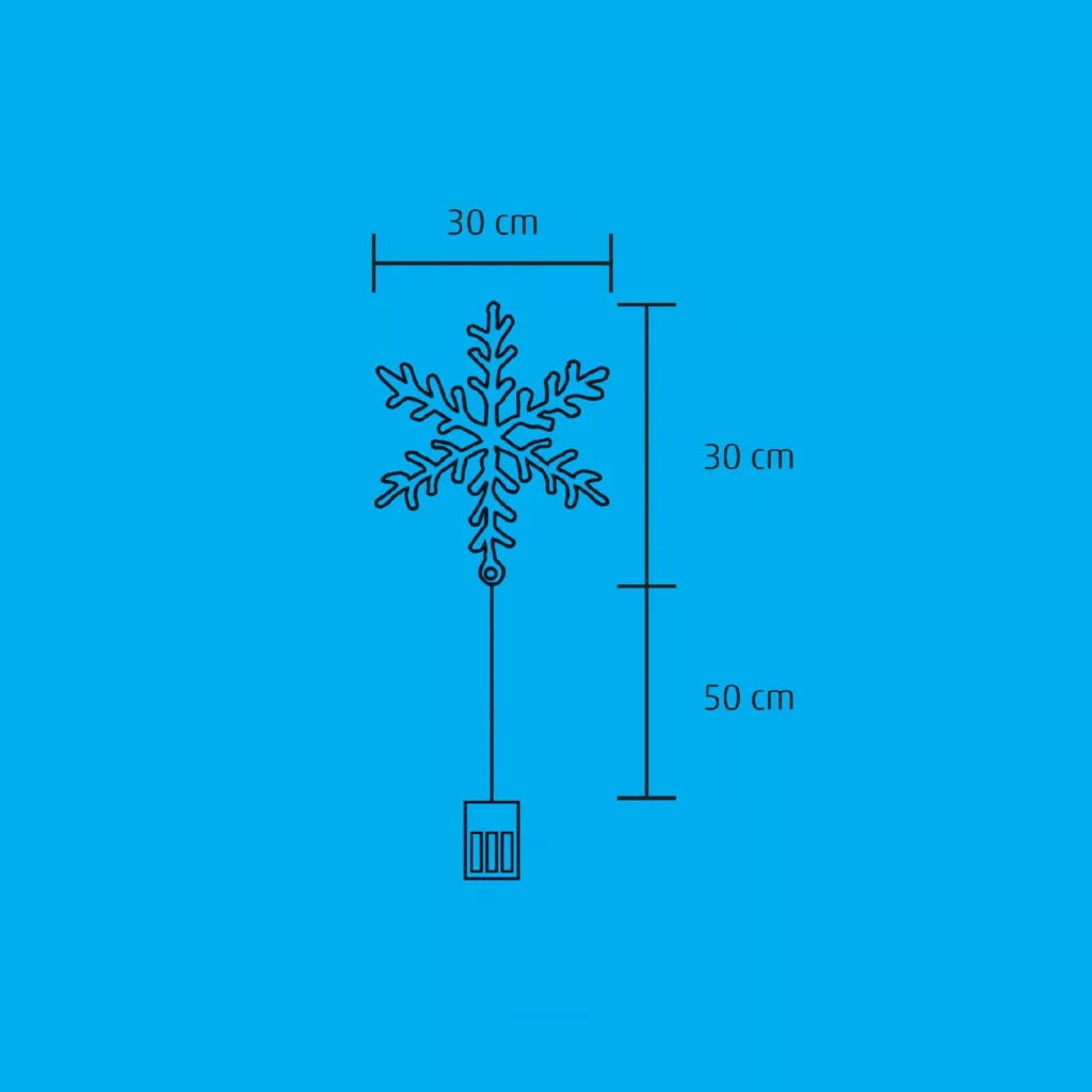 Ez az ablakdísz akril anyagból készült, melyet 16 db melegfehér LED világít meg. Az átlátszó vezetékkel könnyedén elhelyezhető bármely ablakon.