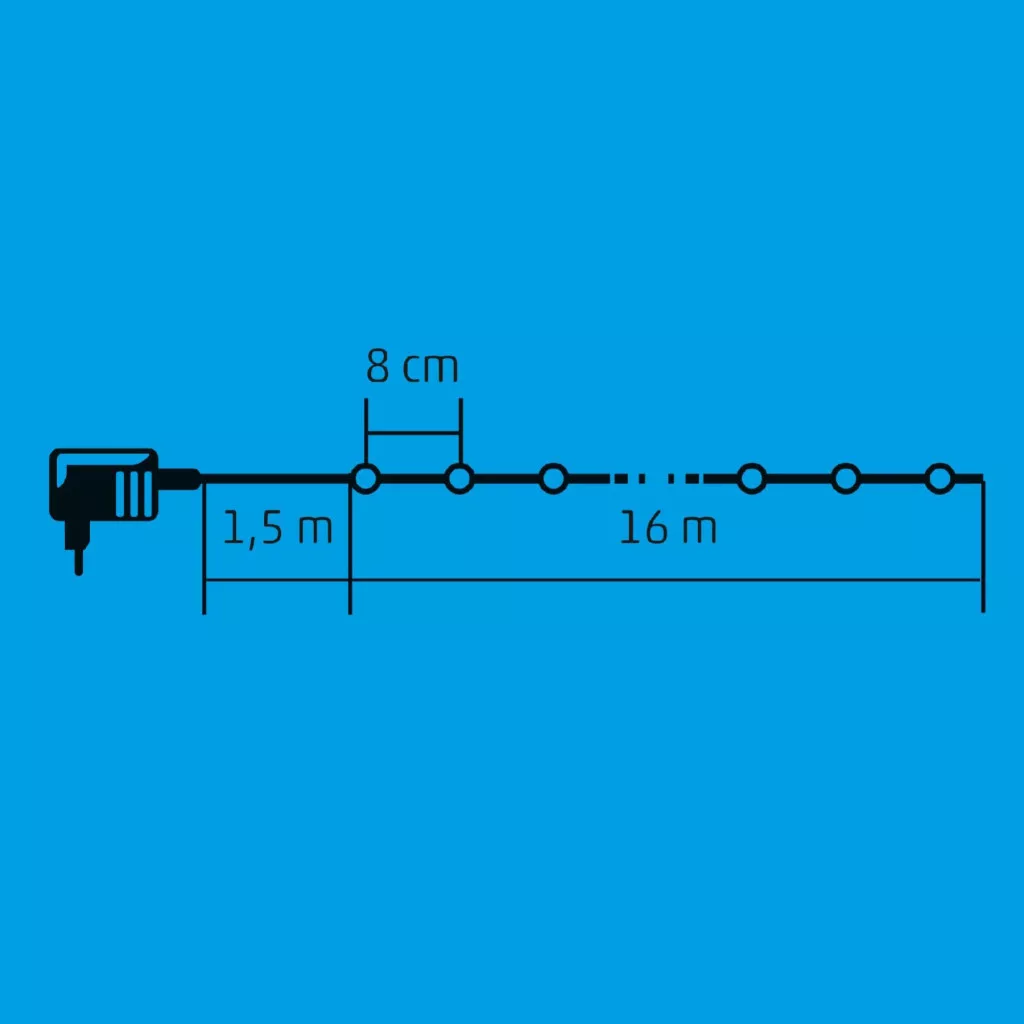 Home KII 200/WW LED-es fényfüzér, 16 m / 200 db melegfehér LED, állófényű, zöld vezeték, hálózati adapter, beltéri kivitel