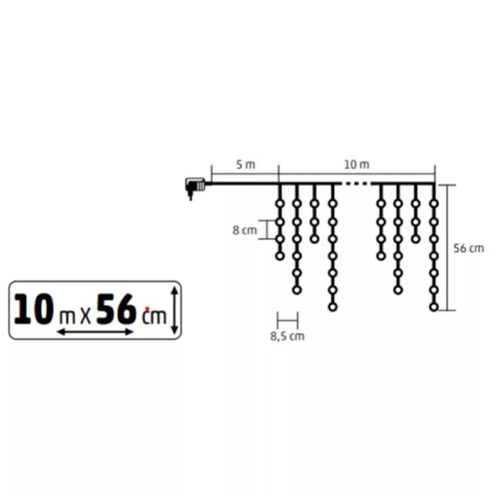 5 m x 56 cm • füzérek közötti távolság: 8,5 cm • LED-ek közötti távolság: 8 cm